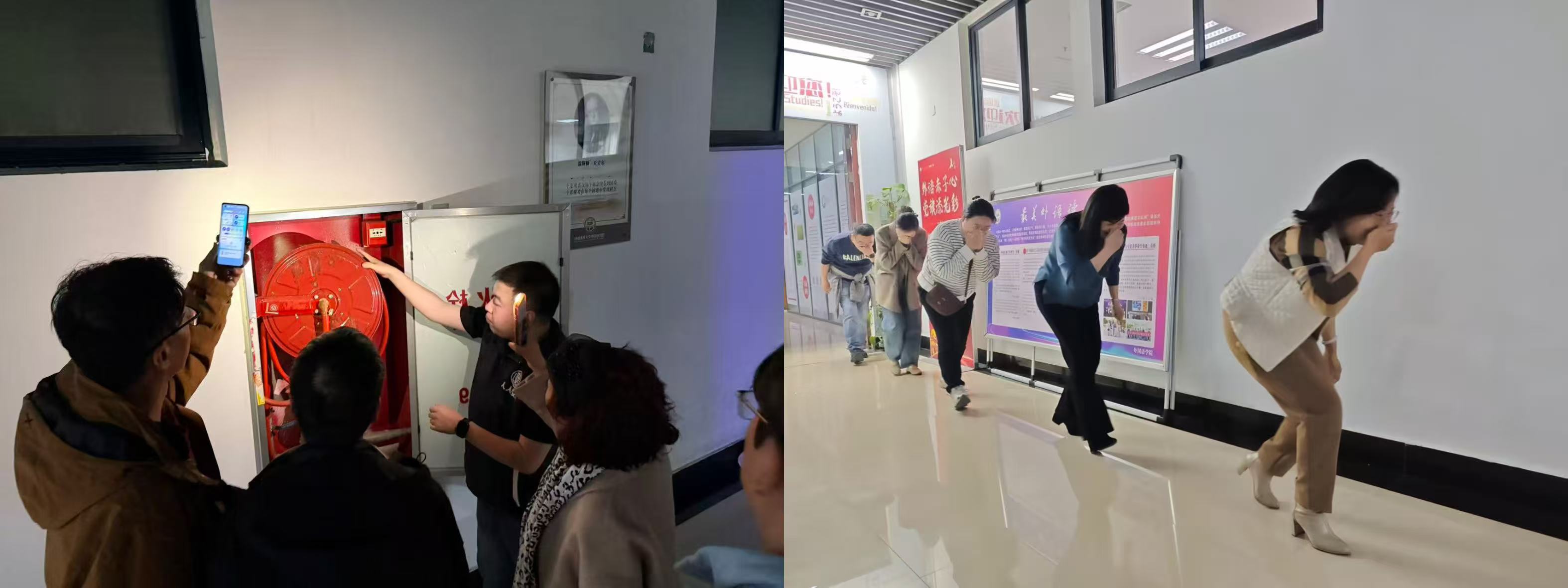 实操演练环节在学院走廊消防栓区域分批次进行。教员打开箱门,详细讲解消防软管、水带、接口、水枪及阀门的安装方法与使用注意事项,并邀请教职工进行实操练习,确保关键时刻“会操作、能应急”。