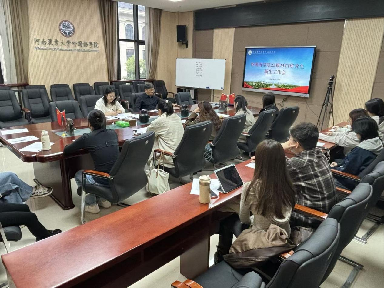 本网讯(审稿:杨鑫 供稿:薛杰 张瑞 李一帆)9月19日,大奶做爱 于A320会议室召开英语笔译专业研究生新生工作会。院长张俊杰出席,学院MTI研究生全体新生参加,会议由研究生辅导员薛杰主持。