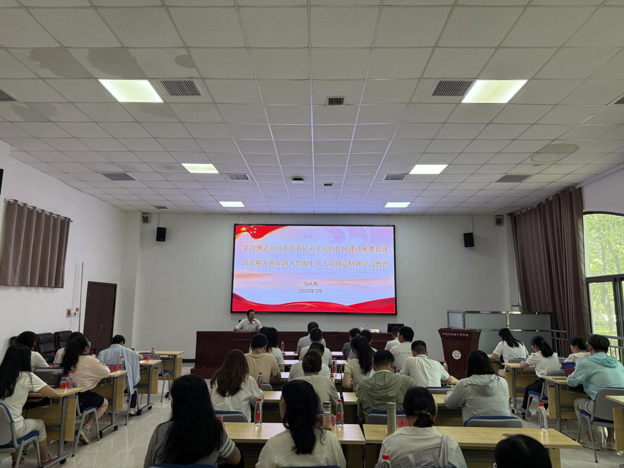 7月5日下午,党委书记王燕萍以《青春向党 初心如磐》为题,院长张俊杰以《改会风 正党风》为题,分别进行了中央八项规定精神学习教育主题党课;学院党委还召开了优秀党员和优秀党务工作者事迹报告会。会议强调,党员干部要以上率下,筑牢纪律红线,将规定精神转化为日常自觉。