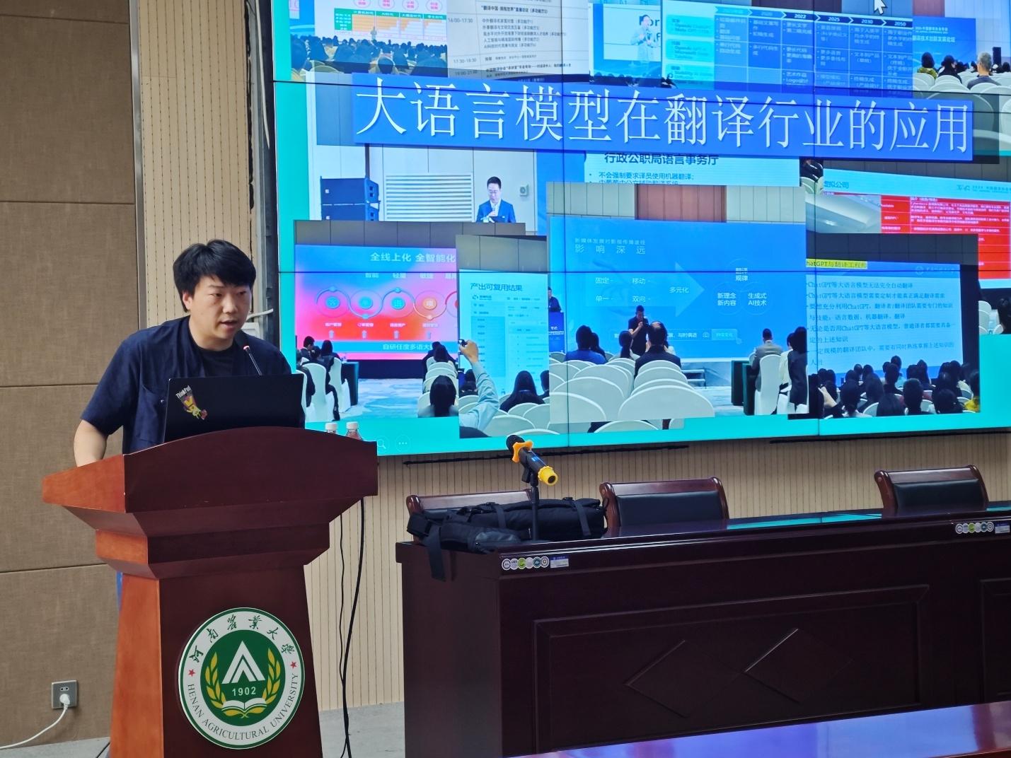 师生作题为“大语言模型在翻译行业的应用”的专题讲座。讲座由翻译系主任豆涛主持,全院师生代表参加了此次讲座。