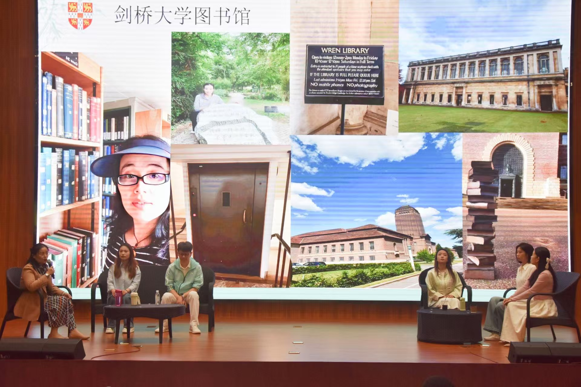 我院教师代表吴玲、朱婧、杨爽、徐思园、宋晓川、陈慧敏带来读书分享会《我和我的图书馆》。六位教师结合自己成长过程中的人生阅读体验和感悟,分享了剑桥大学、清华大学、日本二松学舍大学、北京航空航天大学、澳门大学、陕西师范大学多所高校的图书馆学习经历与美好时光,阅读成为他们不同人生阶段中获取知识、克服困难、追寻人生真谛的恒久力量。