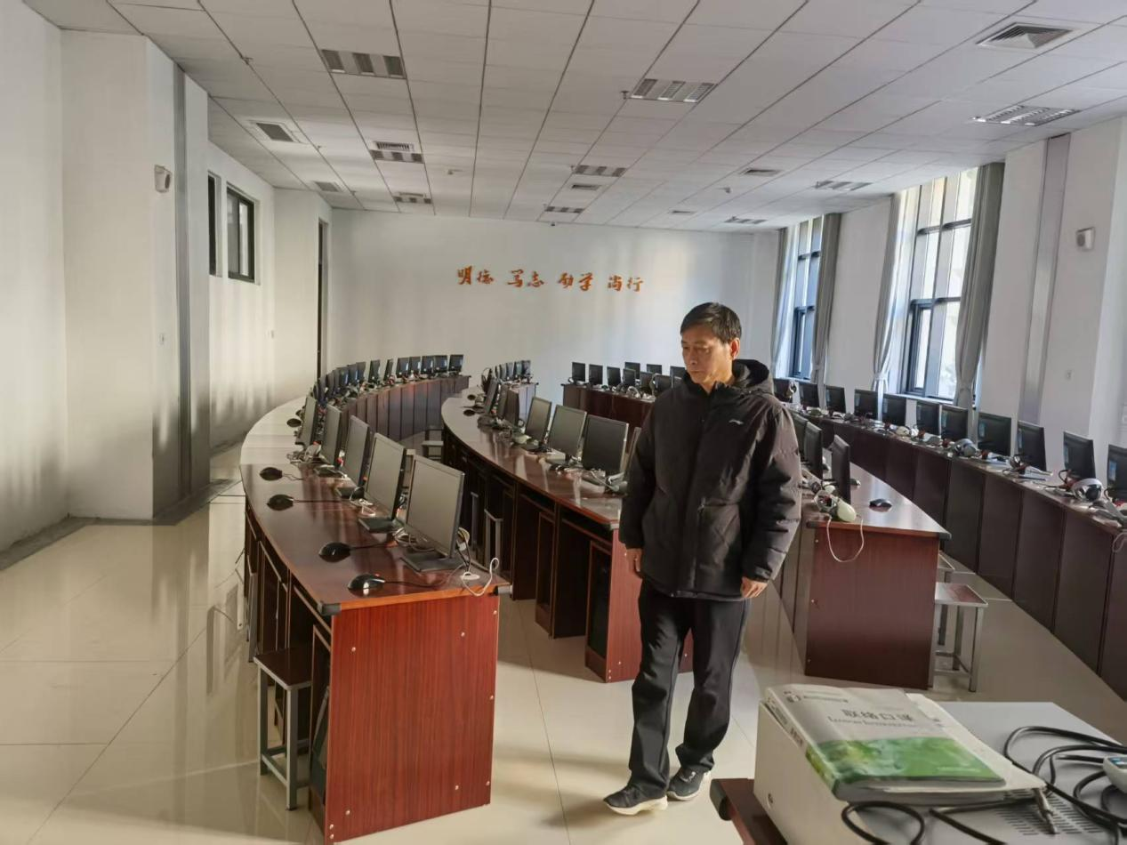 在语言实验室,重点检查了设备的运行状态、用水用电安全以及紧急疏散通道的情况。特别强调,要加强日常维护保养,防止电气火灾的发生;寒假开学前一周,要做好设备检查、维护、试运行等工作,确保春季学期教学工作的顺利进行。