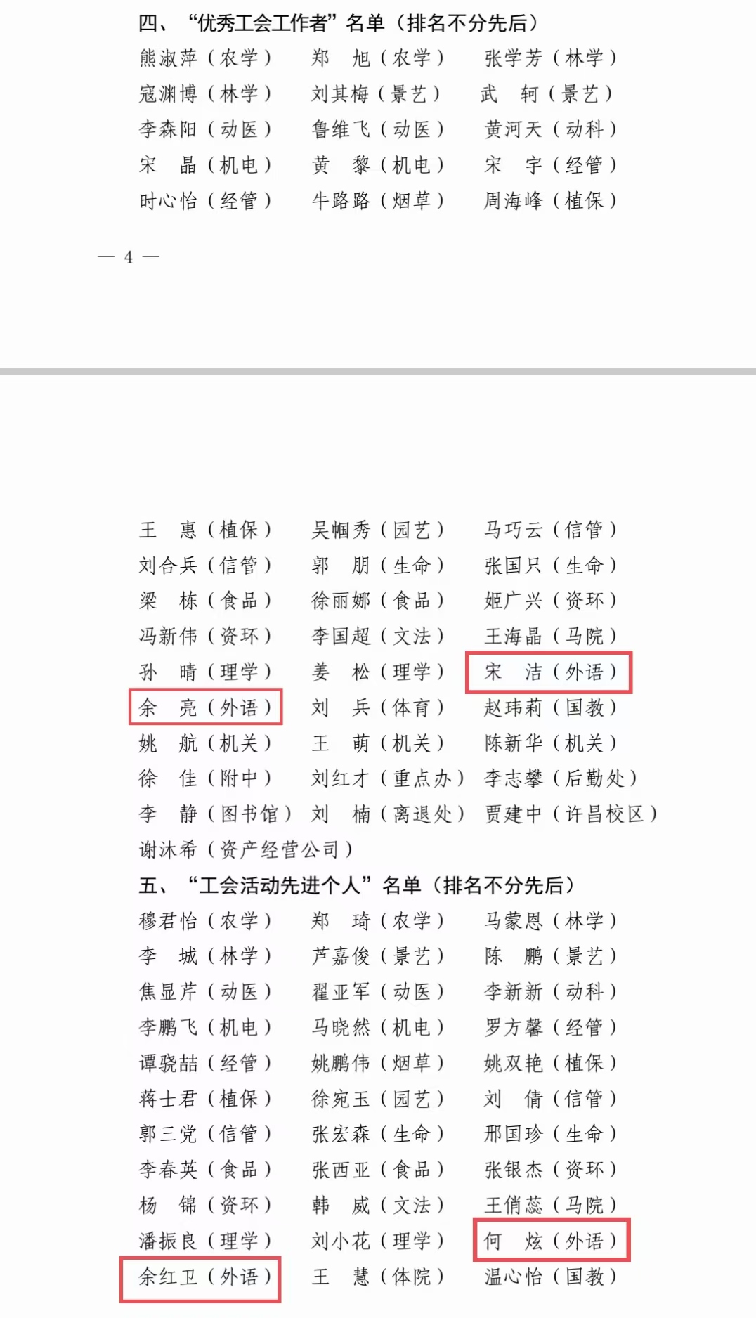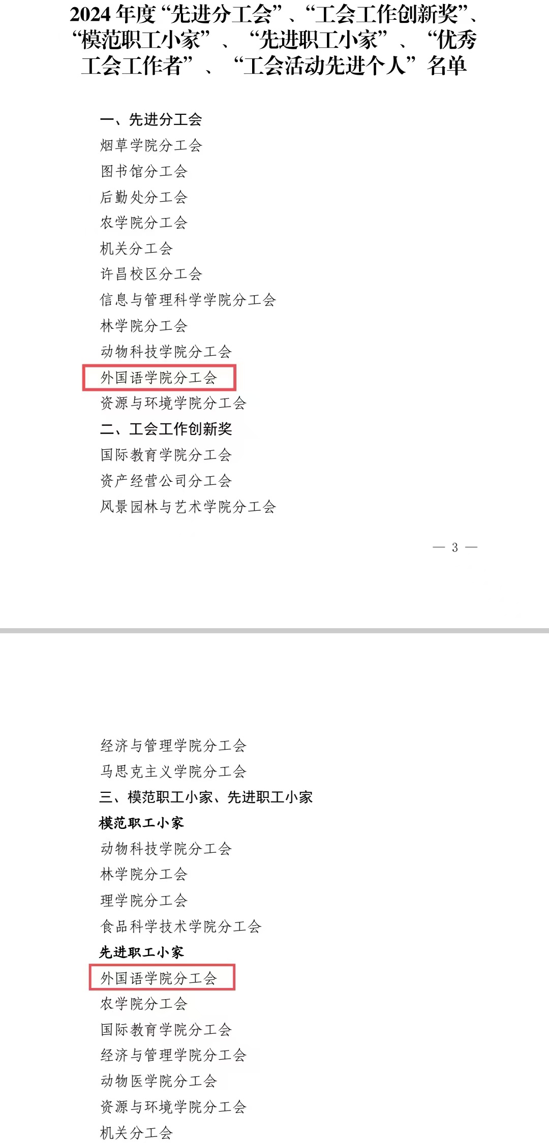 本网讯(审稿:杨鑫 供稿:武宗励 杨若晴)近日,校工会下发《关于表彰2024年度先进分工会、工会工作创新奖、模范职工小家、优秀工会工作者、工会活动先进个人的决定》,我院荣获2024年度“先进分工会”、“先进职工小家”荣誉表彰,同时,我院宋洁、余亮获评“优秀工会工作者”称号,何炫、余红卫获评“工会活动先进个人”称号。