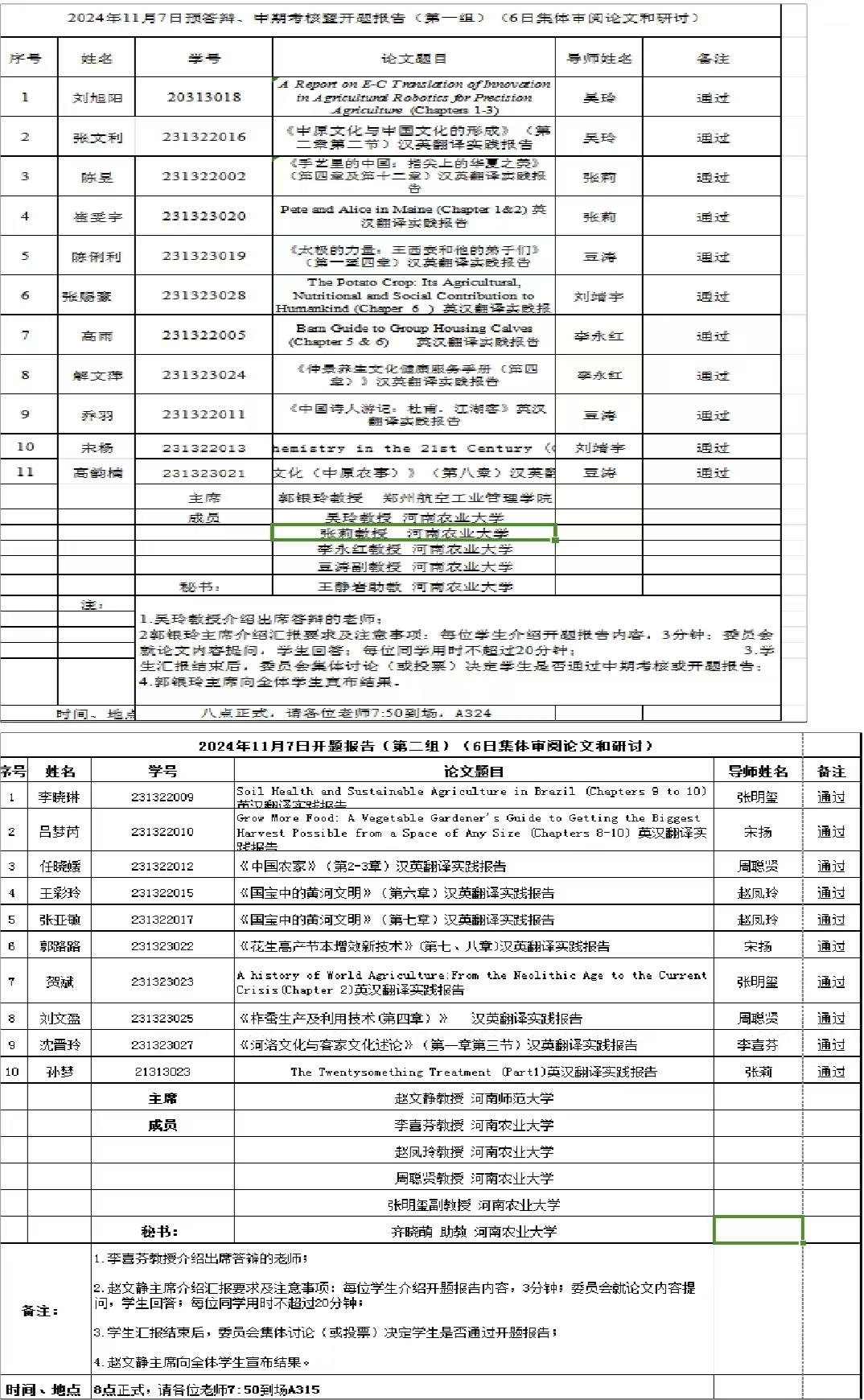 本网讯(审稿:吴 玲 ;供稿:马孝幸;摄影:马孝幸 齐晓萌 王静岩)11月6-7日,我院组织开展了2024年英语笔译专业研究生学位论文开题报告及预答辩、中期考核论证会。本次论证会特邀河南师范大学赵文静教授、河南财经政法大学孙建华教授和郑州航空工业管理学院郭银玲教授分别担任论证小组主席,我院硕士生导师担任委员,2名研究生参加预答辩、中期考核和29名23级研究生参加开题答辩;24级研究生旁听了此次论证会。