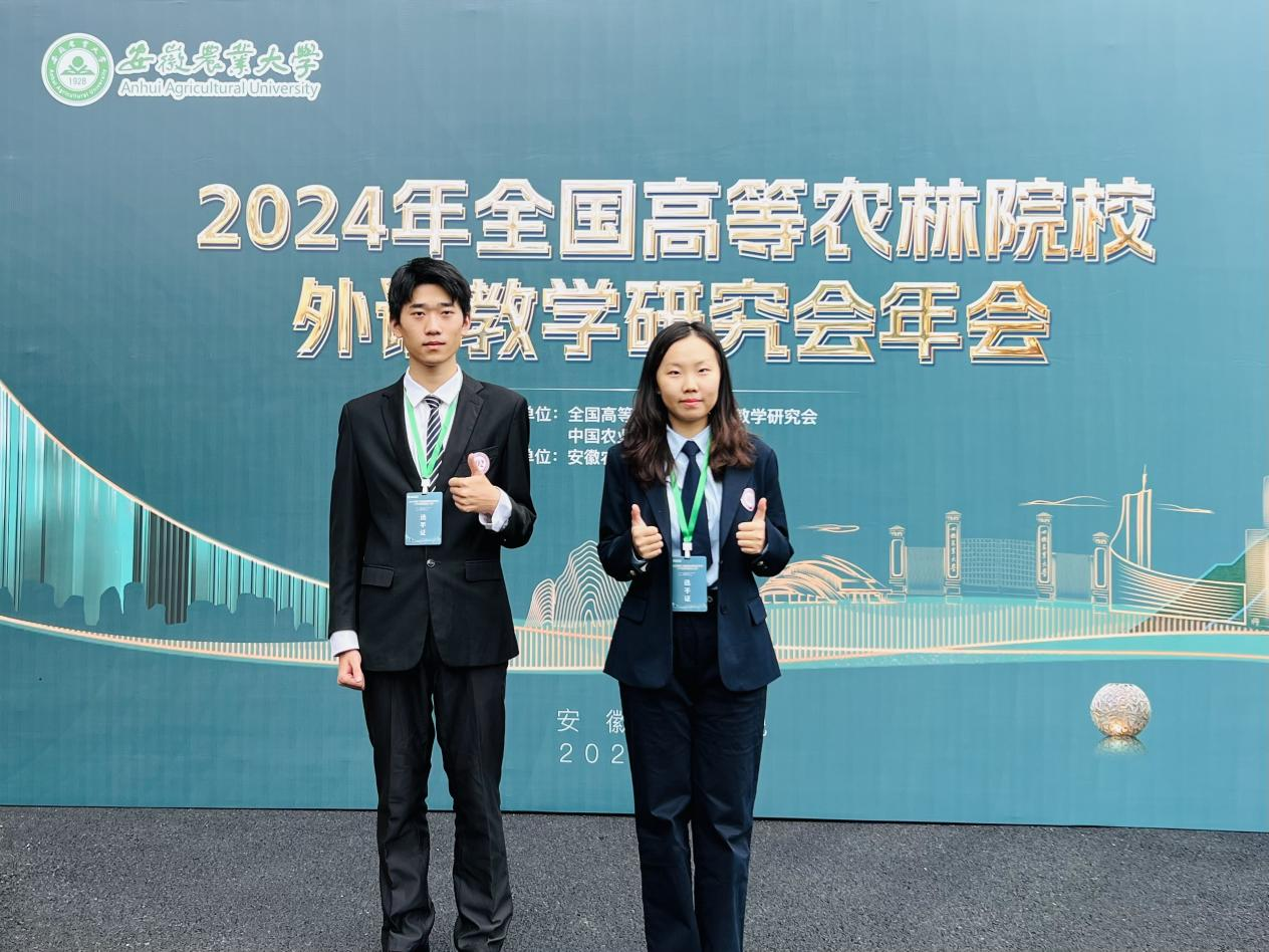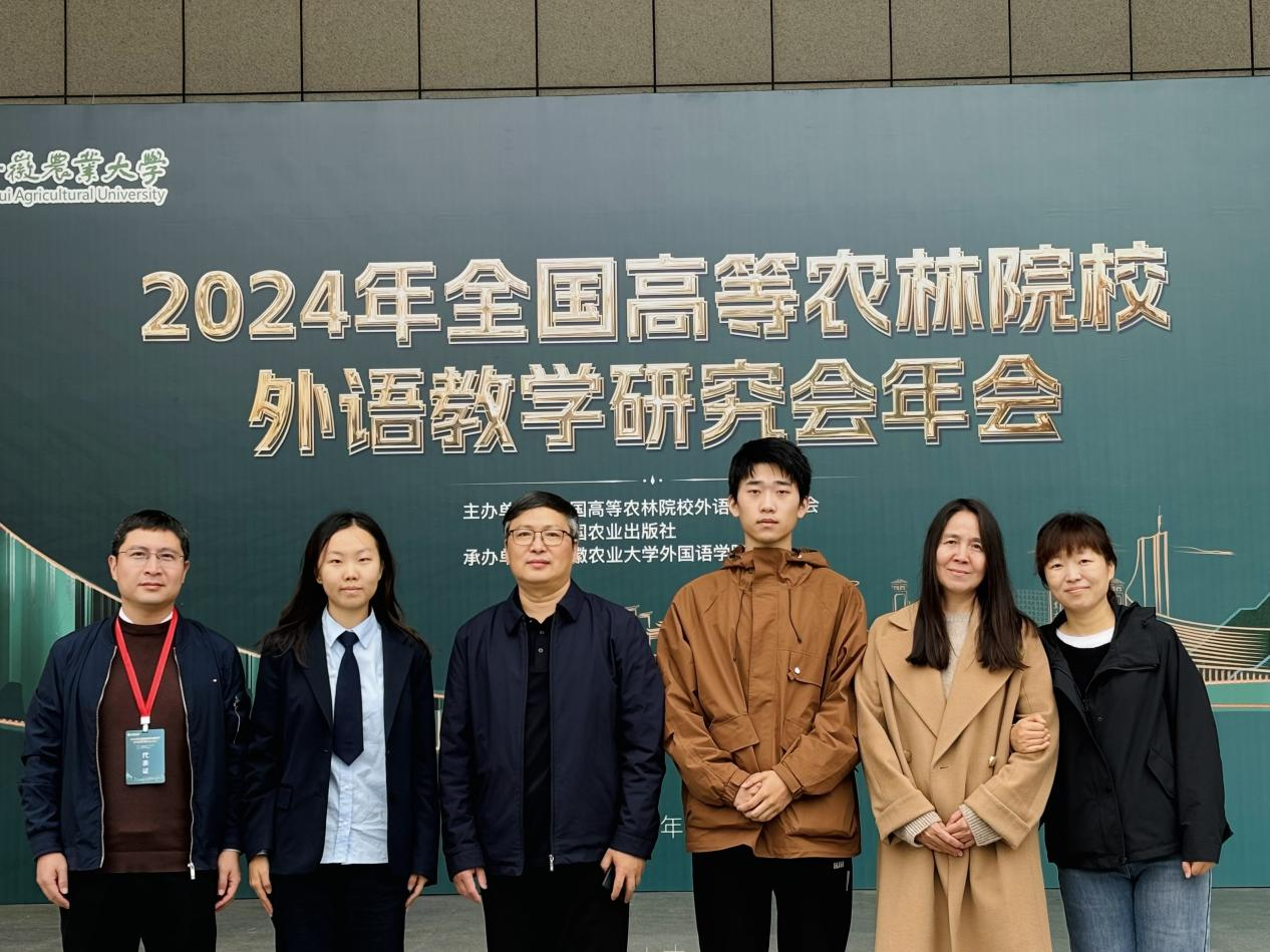 本网讯(审稿:吴 玲 供稿:豆 涛)11月8日至10日,由中国农业出版社、全国高等农林院校外语教学研究会联合主办、安徽农业大学承办的2024年全国高等农林院校外语教学研究会年会暨第三届全国高等农林院校大学生英语演讲大赛在安徽合肥成功举办,大奶做爱 院长张俊杰带队参加。大奶做爱 2024级翻译专业张艺翔和林学院2022级经济林专业马驰骋代表我校参赛并在比赛中发挥出色,分别获得二等奖和优秀奖,豆涛和周亚楠两位老师获优秀指导教师奖。