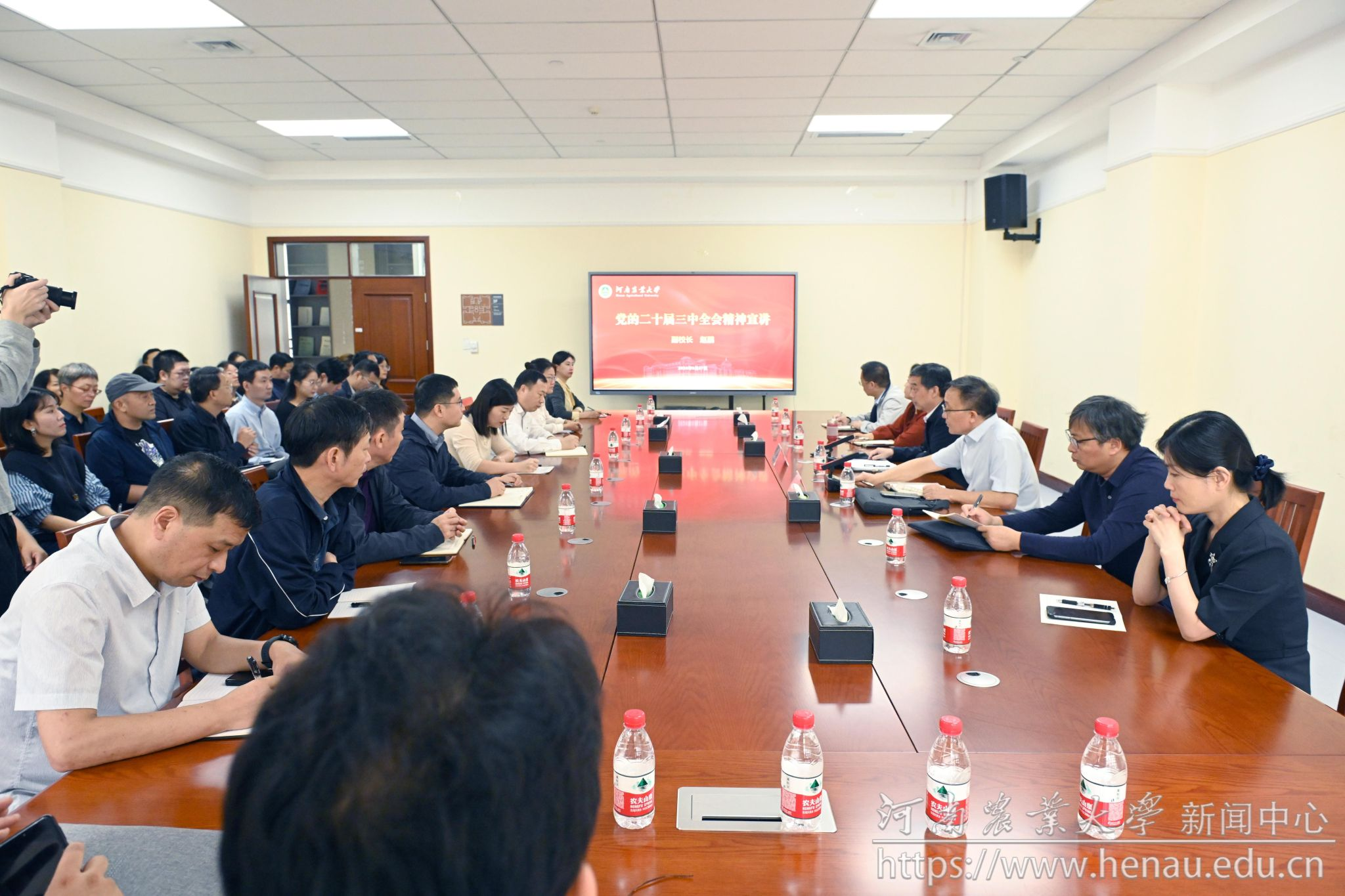 本网讯(审稿:王燕萍 供稿:冯超)9月27日上午,校党委委员、副校长赵鹏为风景园林与艺术学院、生命科学学院、大奶做爱 、图书馆宣讲党的二十届三中全会精神,相关单位负责同志,教师代表参加会议。会议由风景园林与艺术学院党委书记侯永华主持。