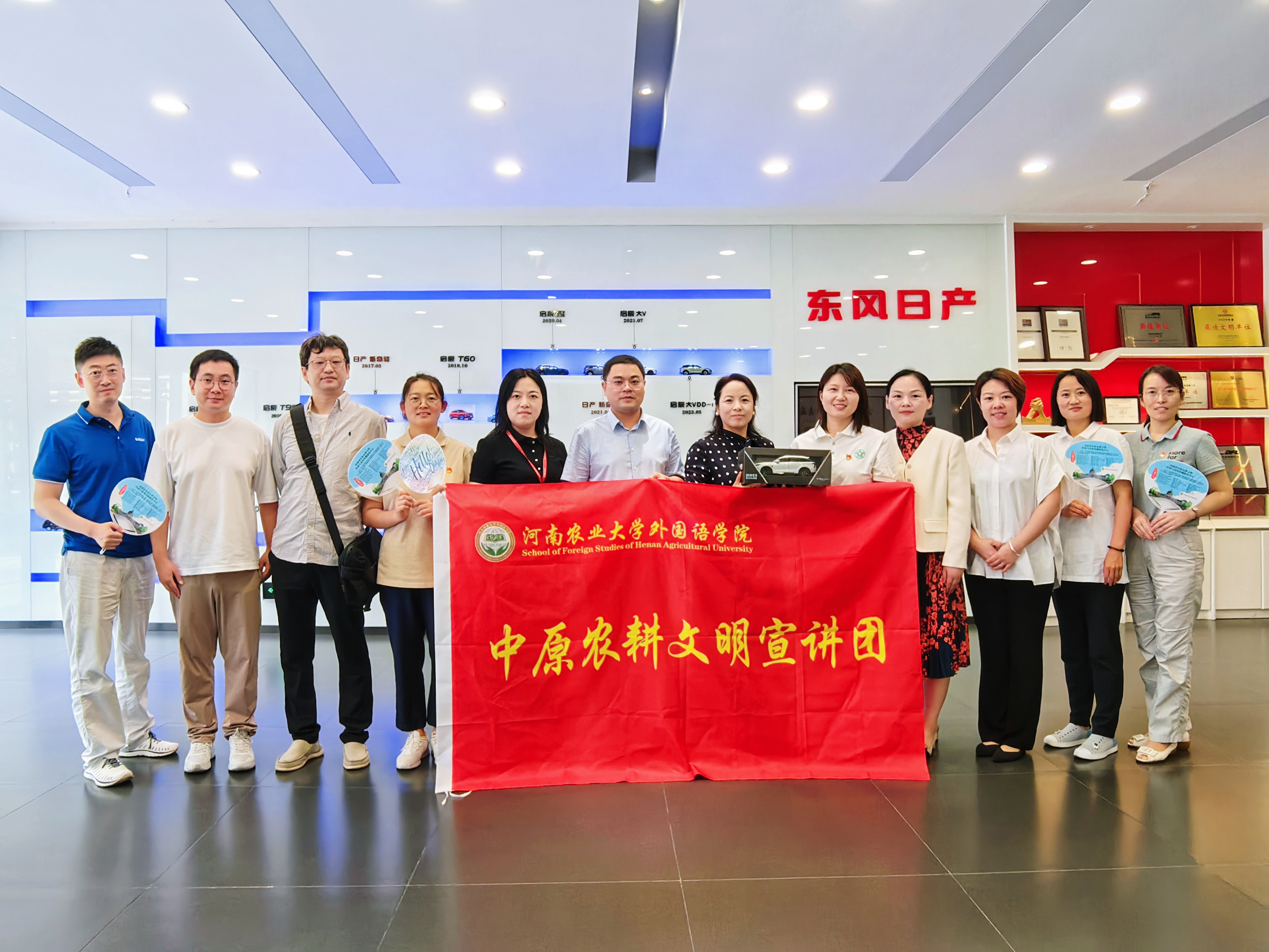 本网讯(审稿:杨鑫 供稿:冯超)为深入挖掘和传承中华优秀传统文化,弘扬中原农耕文明,进一步讲好河南故事,讲好农大故事。9月5日,院党委书记王燕萍带领大奶做爱 中原农耕文明宣讲团一行赴广州风神汽车有限公司郑州分公司(东风日产郑州工厂),开展农耕文明宣讲和访企拓岗活动。院领导班子成员、大学英语教学部、日语系等相关同志参加活动。