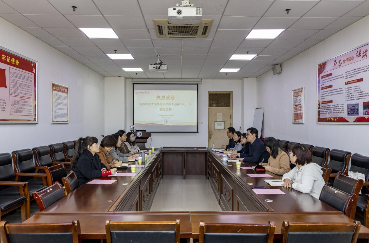 王燕萍对河南中医药大学外语学院的热情接洽表示由衷感谢,并简要介绍了我院党建工作的开展情况,重点就“外语赤子心 党旗添光彩”党建品牌建设、“互联网+外语+党建”的特色工作开展情况和助推我校“农耕文化”传播的“语侬”系列特色活动等进行了交流与分享。