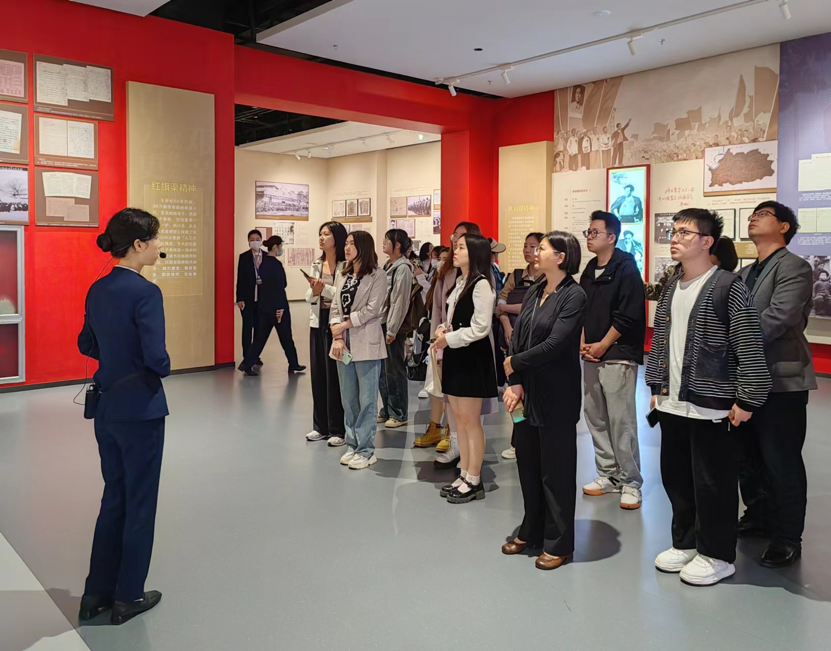 本网讯(审稿:王启佩 供稿:张莉 陈昱)2024年4月16日,为进一步拓宽研究生的文化视野,提升文化素养,增强文化自信,我院教授张莉老师特别组织2023级研究生赴河南省档案馆参观学习,开展了一场别开生面的沉浸式历史文化教学。李永红教授和马孝幸副教授带领同学们一同参观。此次活动不仅让学生们领略到了档案文化的深厚底蕴,也为他们未来在学术道路上的探索提供了宝贵的启示和动力。