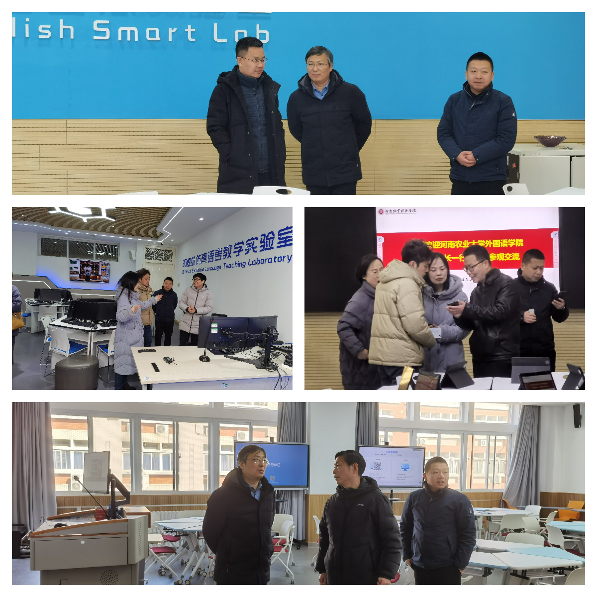 本网讯(审稿: 张俊杰 供稿: 郝晓峰 张治坤)为进一步推进学院语音实验室建设,对接学校事业新发展,1月26日上午,我院院长张俊杰携主管副院长及相关部门负责人先后赴河南牧业经济学院、郑州大学进行调研,考察智慧语言实验室的建设和运行情况。
