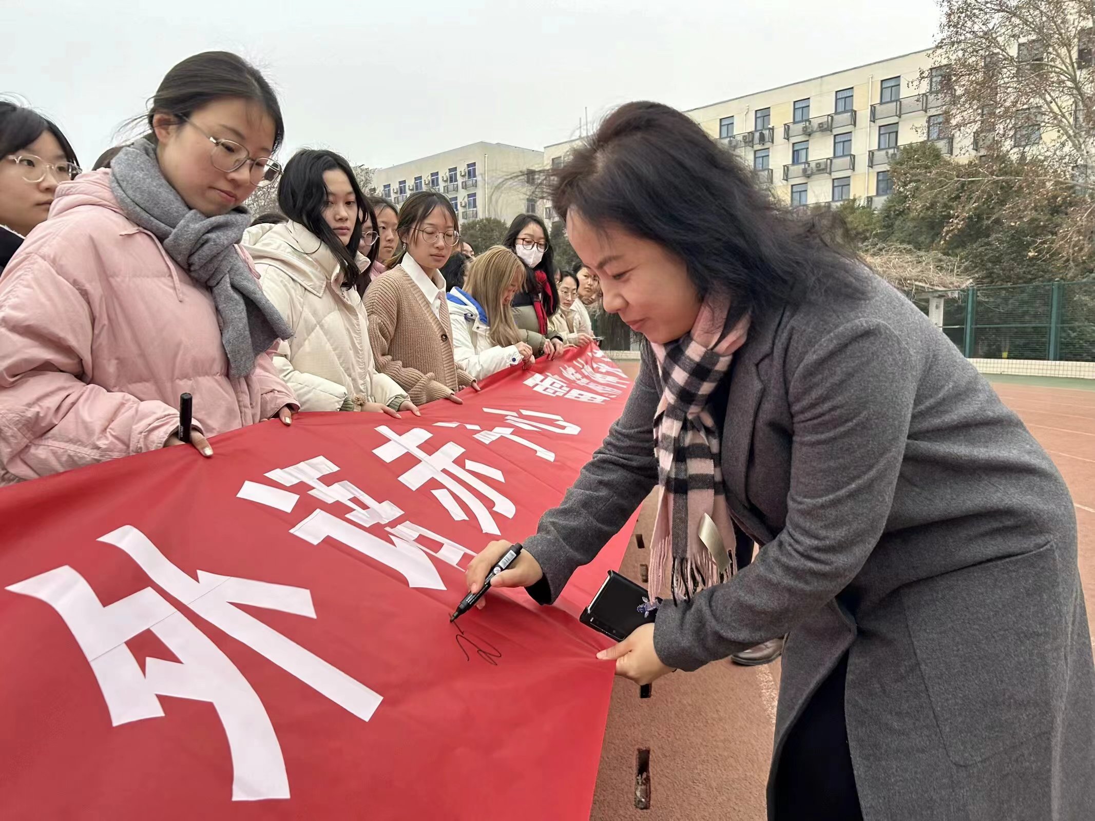 现场师生在横幅上签字