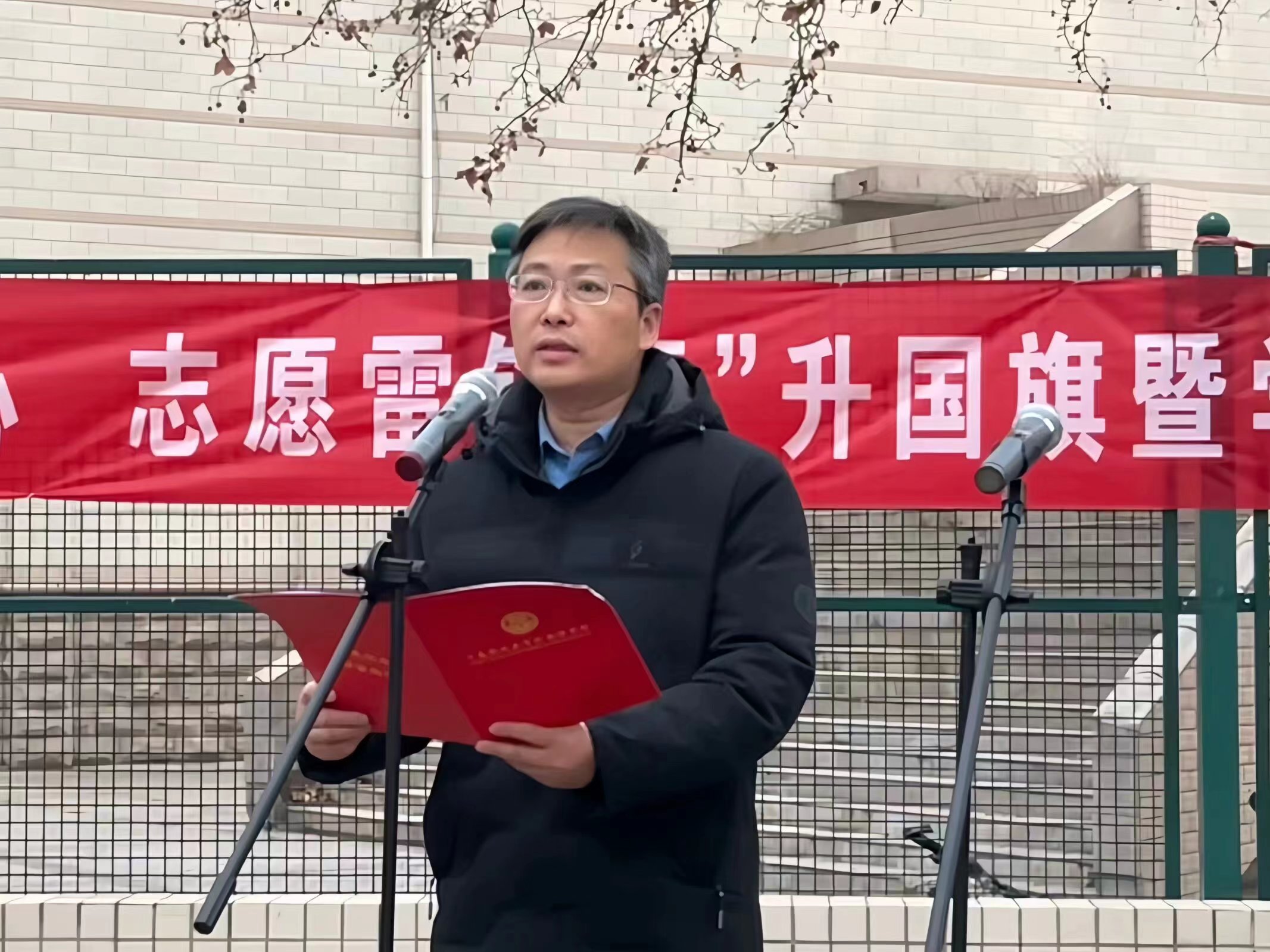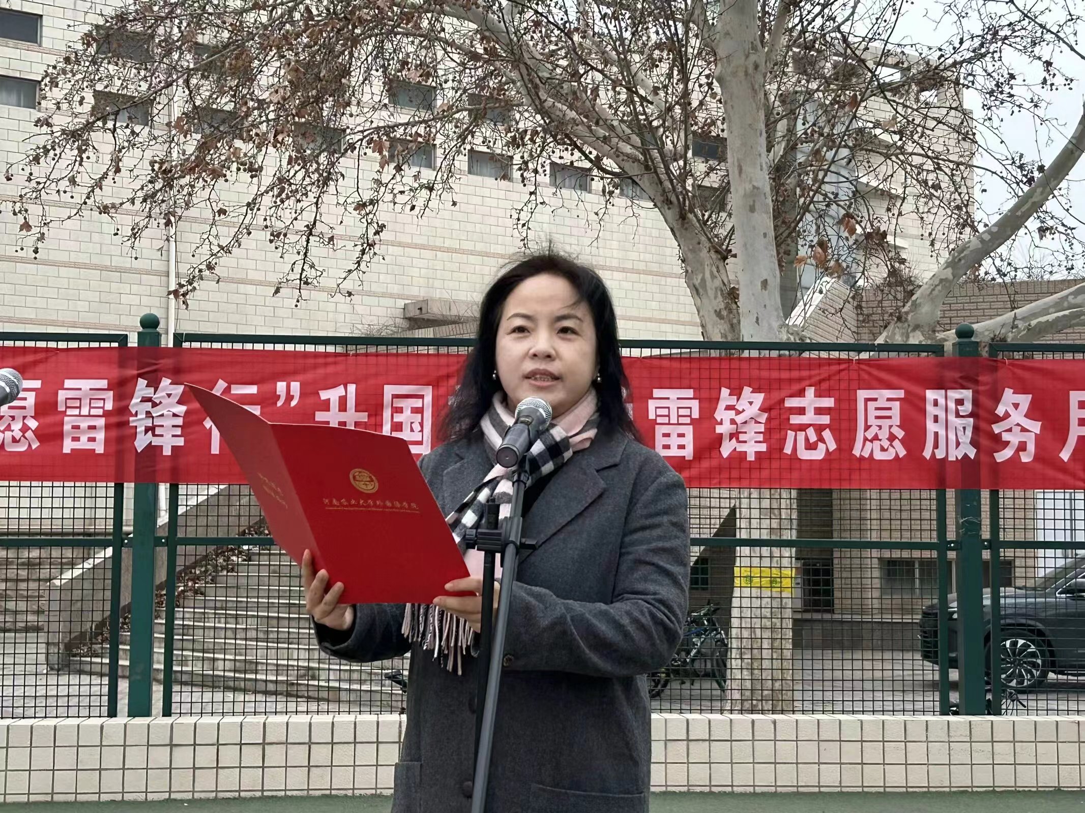 王燕萍发表国旗下的讲话。她指出,习近平总书记强调,雷锋精神的核心是信念的能量、大爱的胸怀、忘我的精神、进取的锐气,这也正是我们