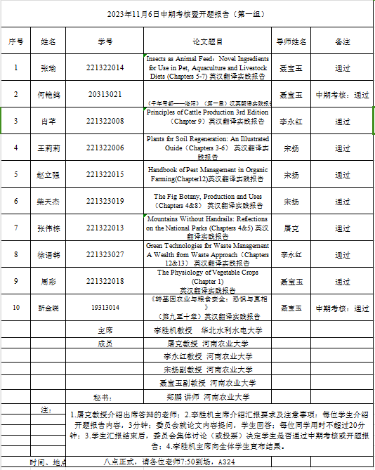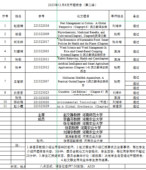 开题报告暨中期考核作为研究生培养过程中的重要环节,对于保证学位论文的质量具有重要意义。此次开题报告,让同学们对自己的论文选题、研究思路和论文内容等方面有了更加深入的理解和把握,为后续保质保量完成毕业论文的写作提供有力保障;同时我院23级研究生表示观摩此次开题报告暨中期考核受益匪浅。