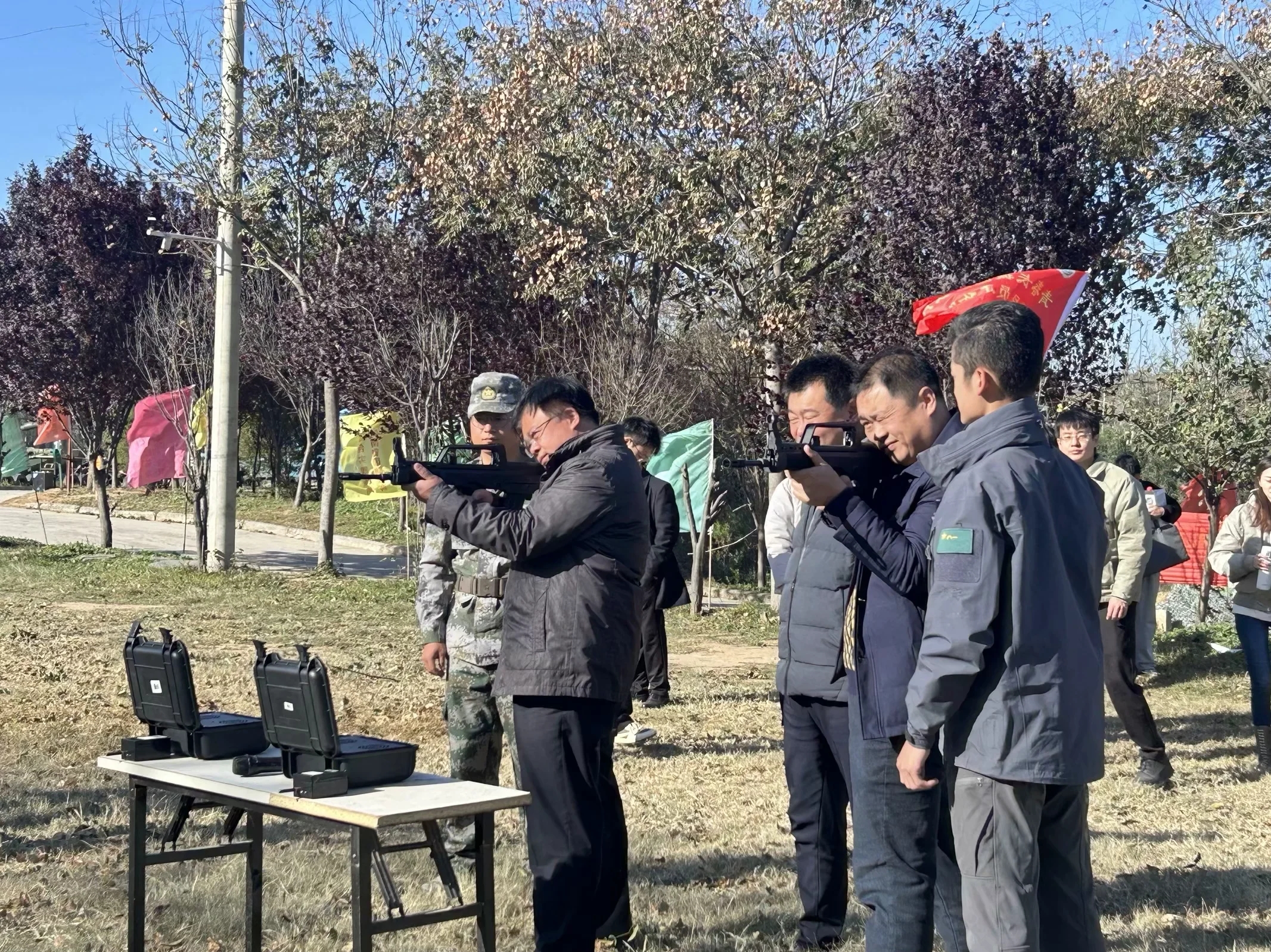 本次沙龙活动分为参观体验和经验研讨两个阶段。在武器装备参观和军事科目体验环节,参与活动的各位老师在教官的讲解和演示中,了解武器装备的发展历程、现状和未来趋势,与武器装备进行了“亲密接触”,并亲身体验了靶场射击、投掷手雷、模拟火箭弹等项目。在国防教育研讨环节,来自食品科学技术学院的辅导员陈翔、资源与环境学院的辅导员胡明阳、农学院的辅导员唐朝、生命科学学院的辅导员张琨、文法学院的辅导员赵梦闪、动物医学院的辅导员冯杰6位辅导员老师结合自身的工作实际,分享了辅导员开展国防教育的经验与体会。农大铁军成员、大奶做爱 青马班学生代表高金鹏分享了自己不懈追求绿色军营梦的奋斗历程。与会嘉宾还代表青春长城国防教育辅导员工作室向大奶做爱 第六期青马班学生代表赠送了书籍《孙子兵法》和《正道沧桑》,勉励他们进一步增强国防知识学习,积极投身国防事业。现场气氛热烈,大家在活动中既增强了国防观念和爱国情怀,又升华了理论认识,激发爱党爱国的热情,切身感受国防伟力。