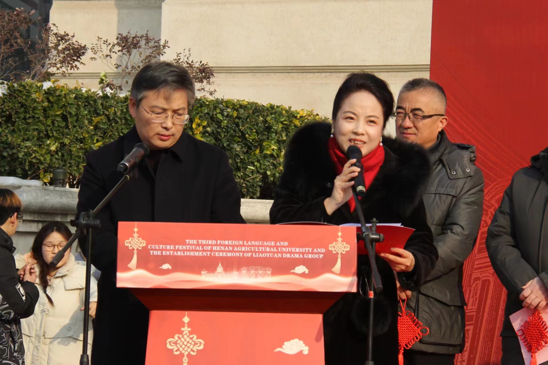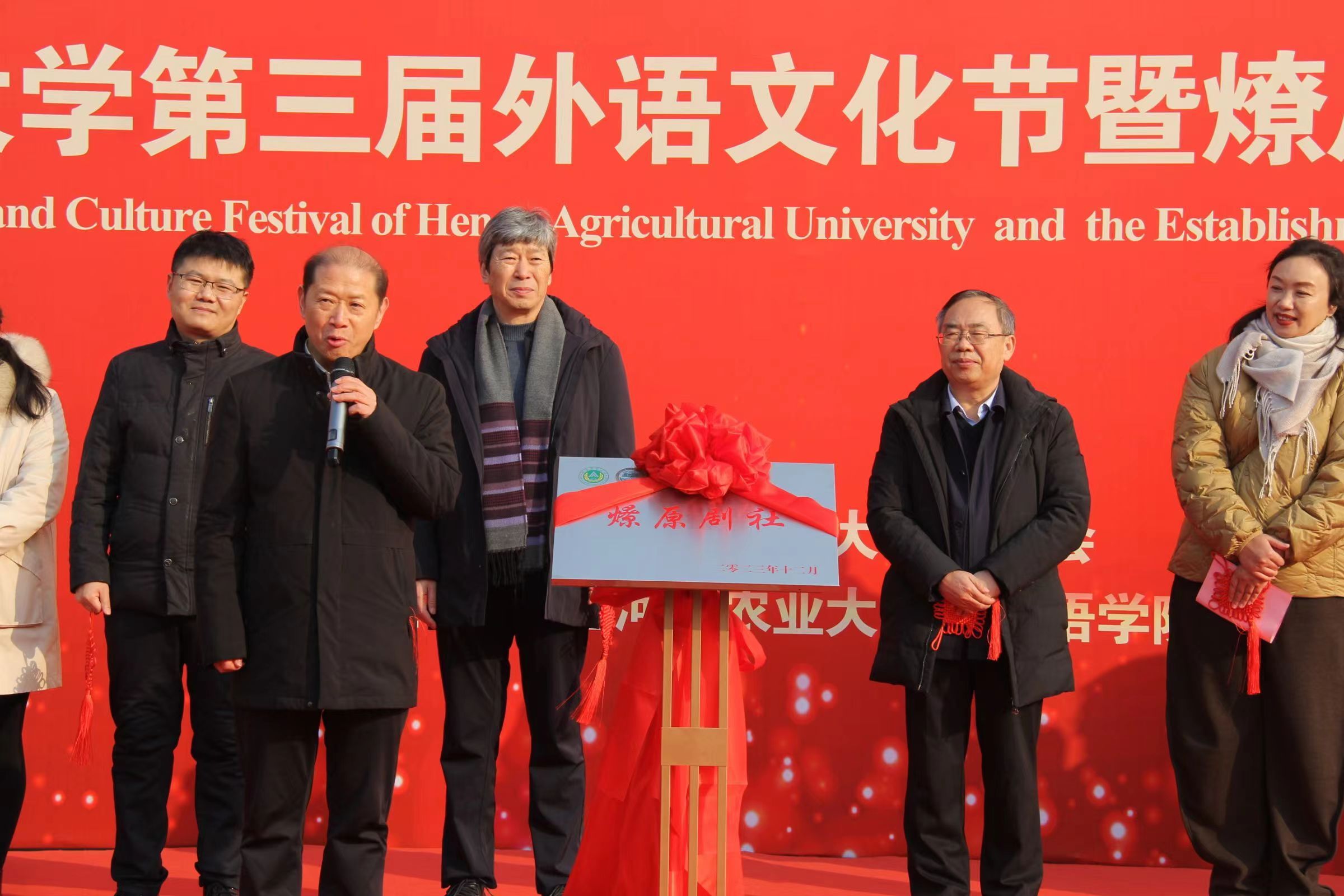 介晓磊、尚富德共同为“燎原剧社”隆重揭幕。随后,介晓磊用双语宣布本届外语文化节正式开幕。