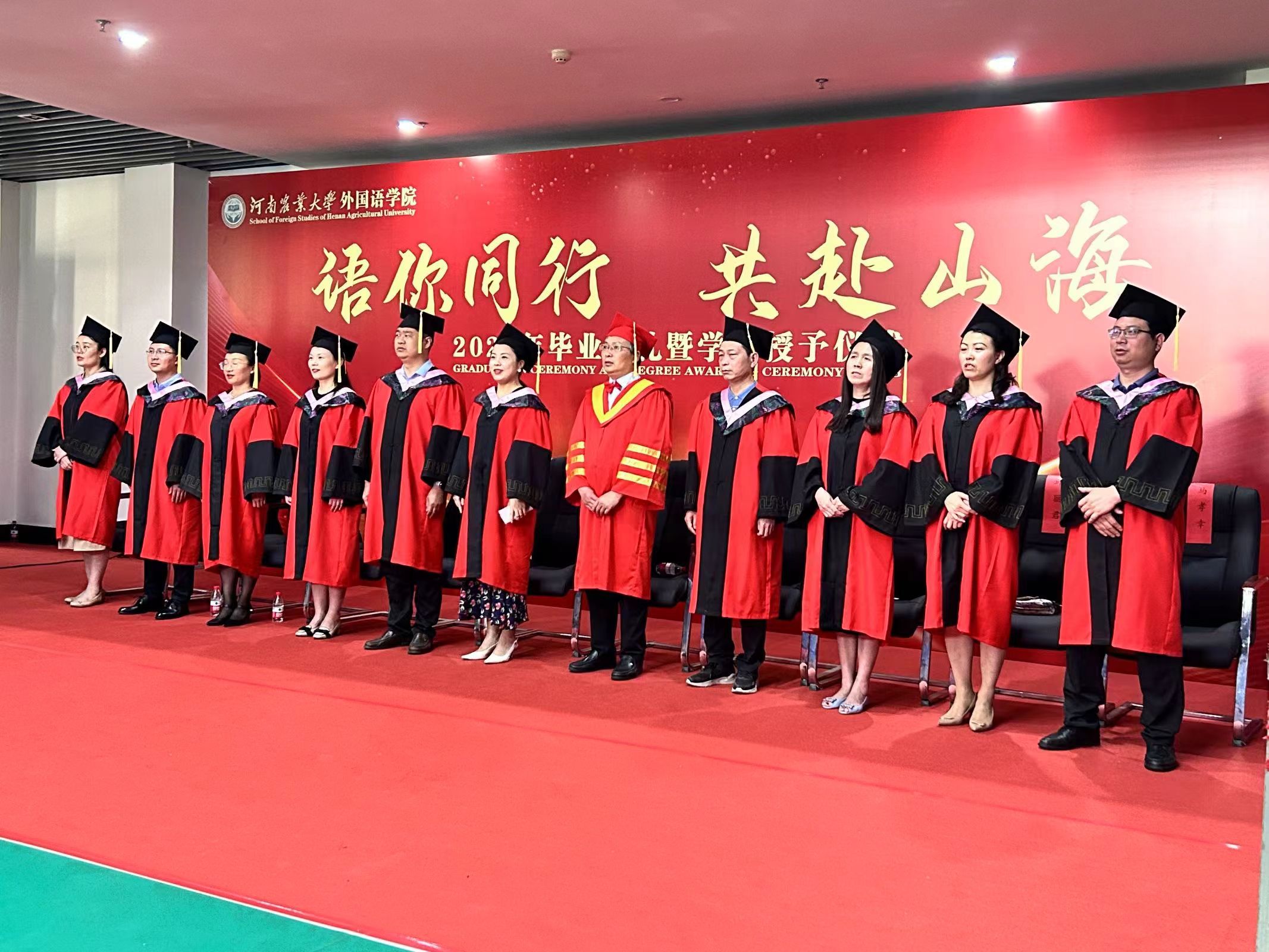 院党委书记王燕萍、院长张俊杰携院领导班子成员及院学位评定委员会委员身着学位服出席仪式