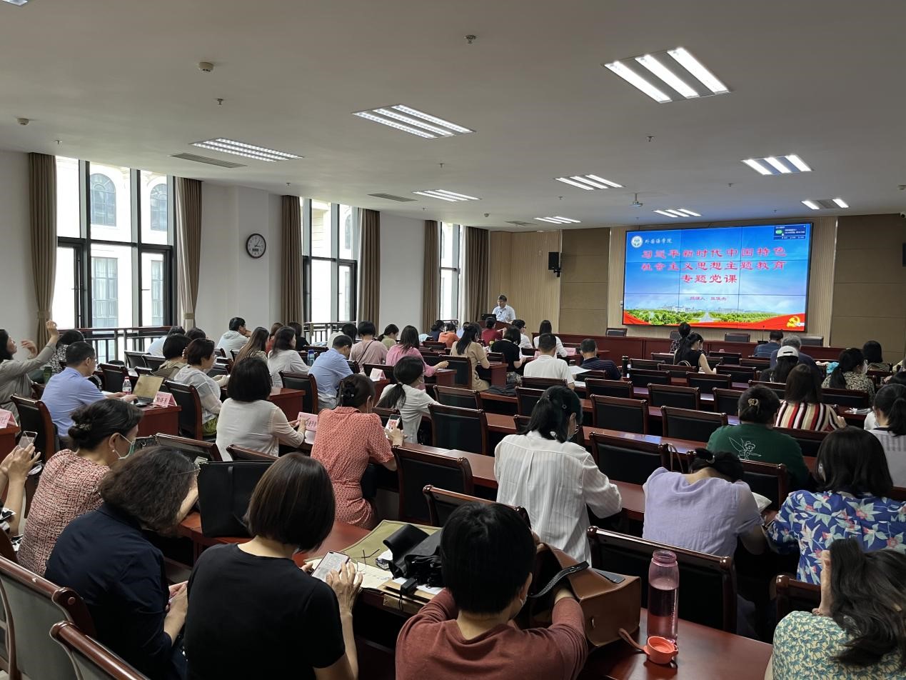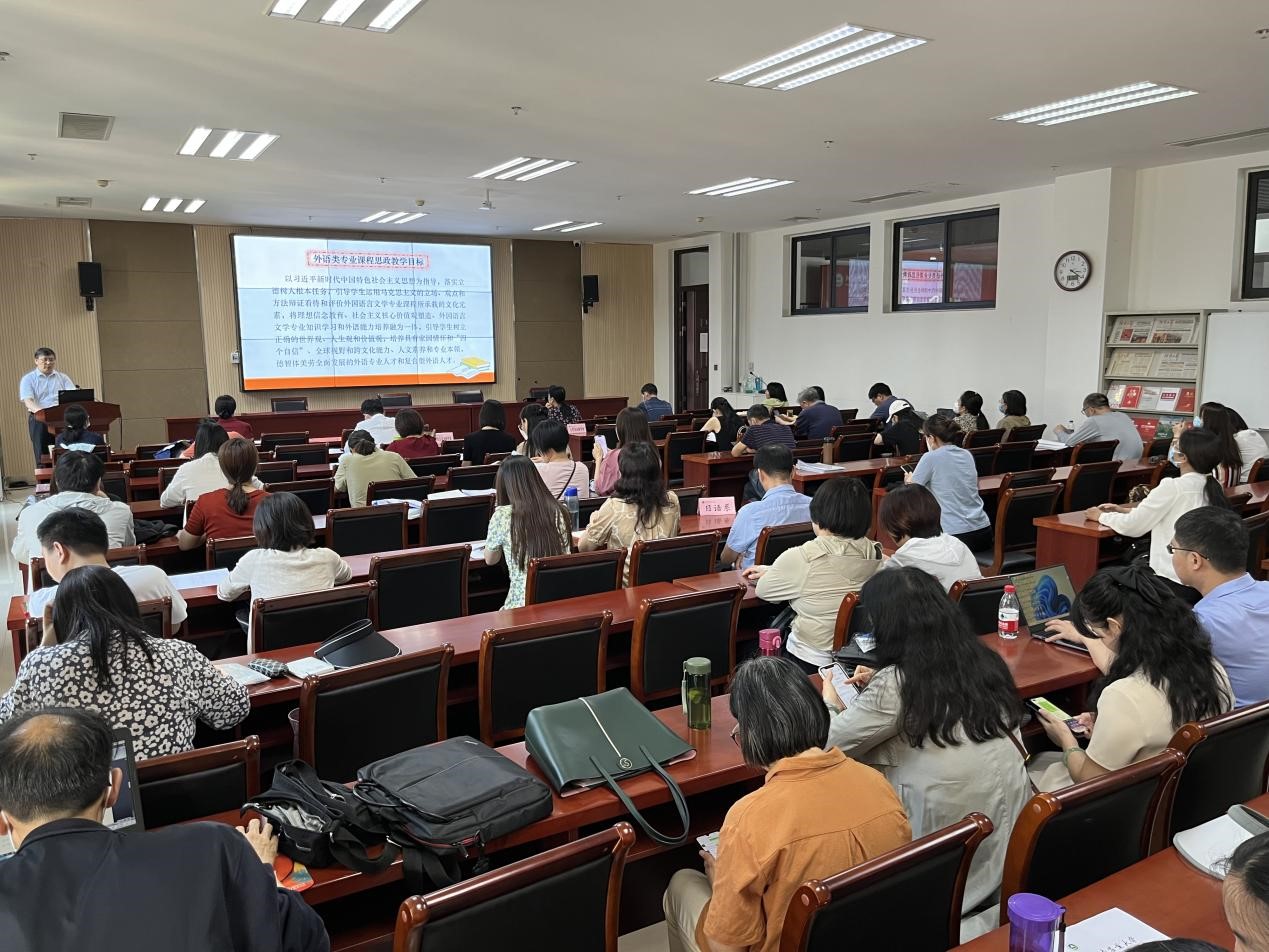 本网讯( 审稿:王燕萍 供稿:郝晓峰 吕品)按照学习习近平新时代中国特色社会主义思想主题教育要求,为贯彻党的二十大精神,落实河南省高校《理解当代中国》外语教学工作研讨会会议精神,6月13日下午,我院院长张俊杰以《一体推进“三进”工作、课程思政、新文科建设》为题,向全体教职工讲授专题党课。
