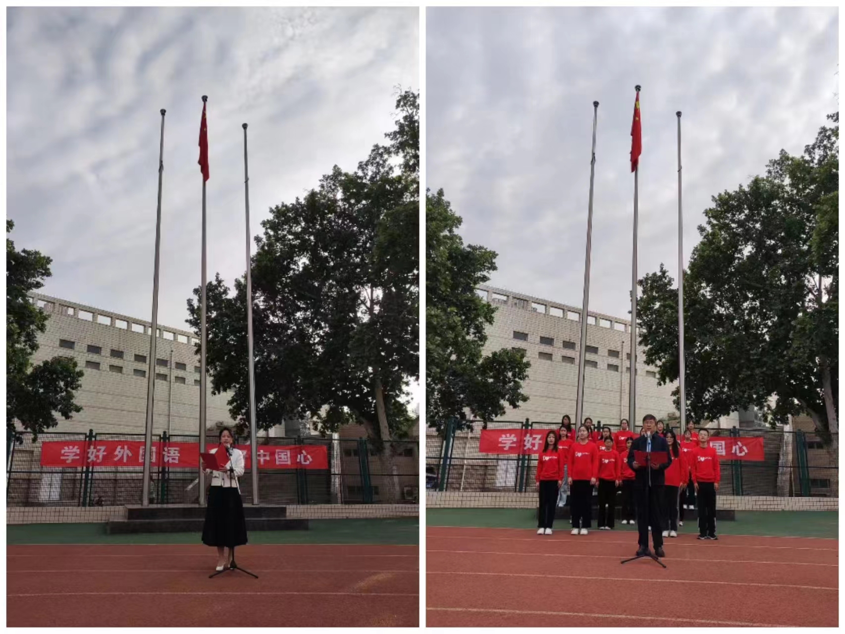 2022级学生代表刘博毅发表国旗下的演讲,他表示作为外语学子要练就过硬本领,守住初心使命,树立远大志向,增强做中国人的志气、骨气、底气,不负时代,不负韶华,不负党和人民的期望。仪式在2022级学生《我和我的祖国》合唱中落下帷幕。