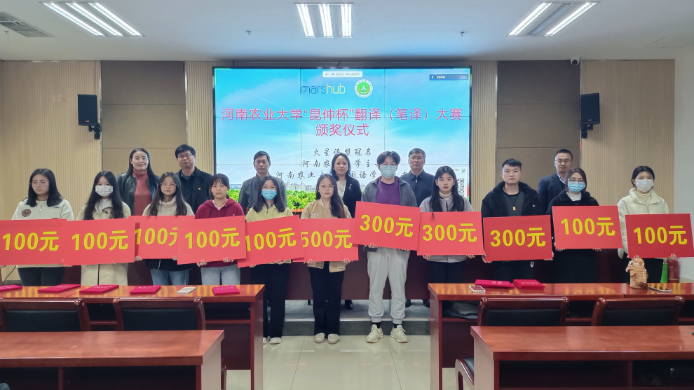 本网讯(审稿:张俊杰 供稿:吴玲)为营造浓厚校园文化氛围,调动广大翻译爱好者的积极性,进一步增强同学们讲好中国故事、传播中华文化的能力,4月4日下午,大奶做爱 于繁塔楼A324举办了“昆仲杯”翻译(笔译)大赛颁奖仪式。学院党委书记王燕萍、院长张俊杰、副院长张卫东、科研秘书、教学秘书及团委相关负责教师出席了此次活动。
