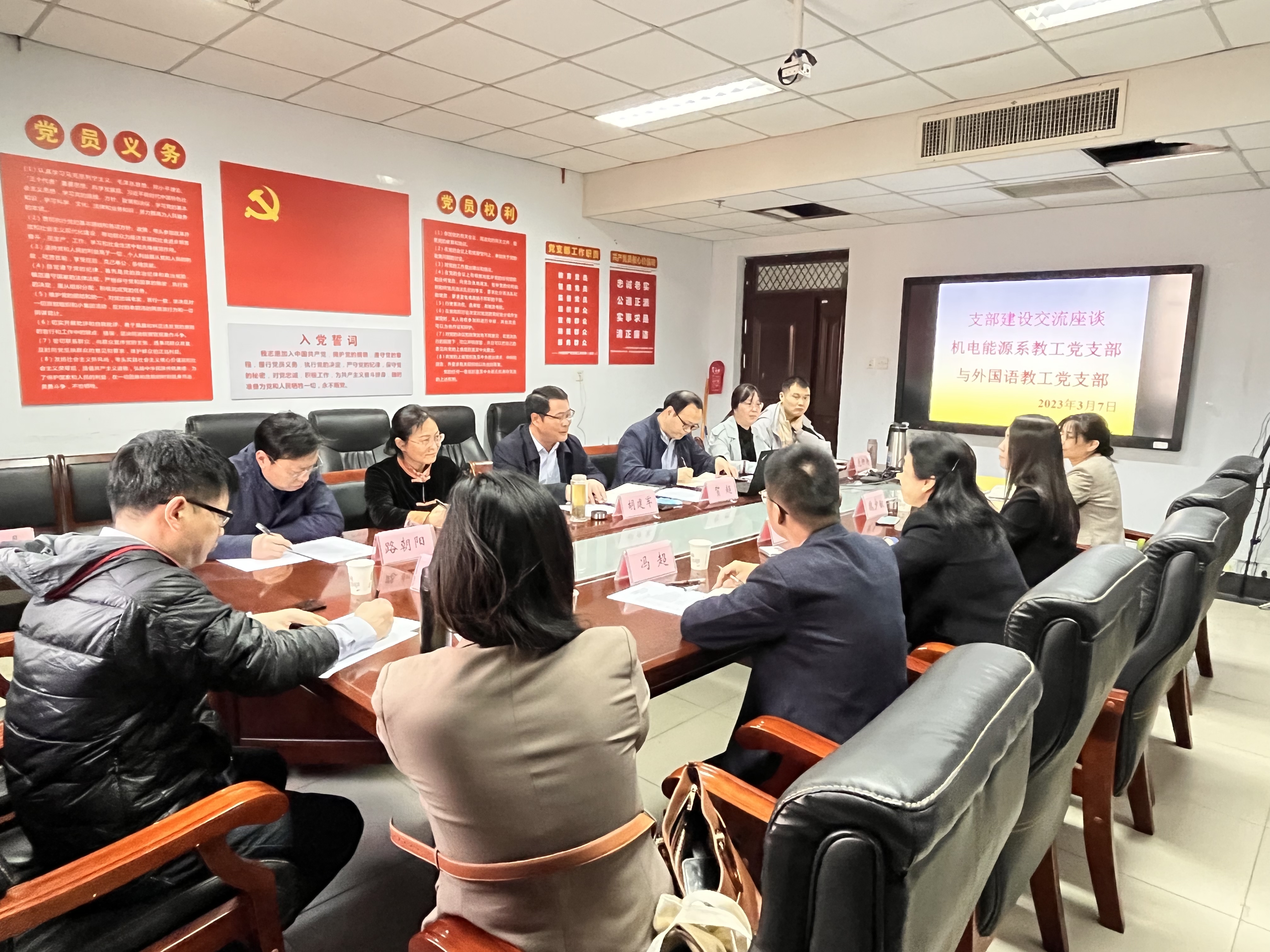 本网讯(审稿:王燕萍 供稿:武宗励 冯超)为进一步加强教工党支部建设,对标先进,3月7日上午,大奶做爱 党委书记王燕萍率研究生英语教学部教工党支部全体成员和团委相关负责同志赴机电工程学院全国样板党支部学习调研。机电工程学院院长胡建军、能源工程系教工党支部负责同志及教工党员代表参加活动,座谈会由胡建军主持。