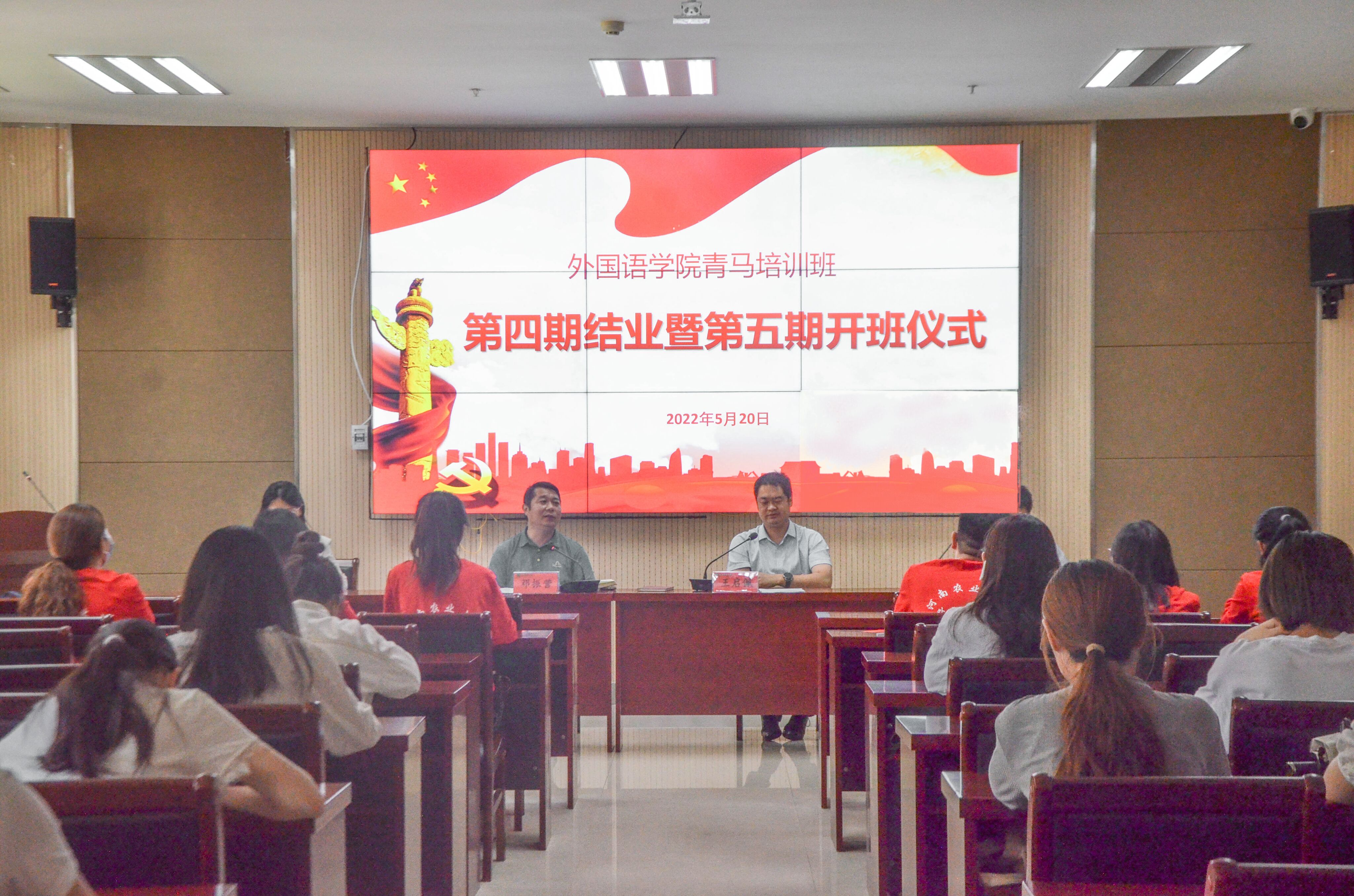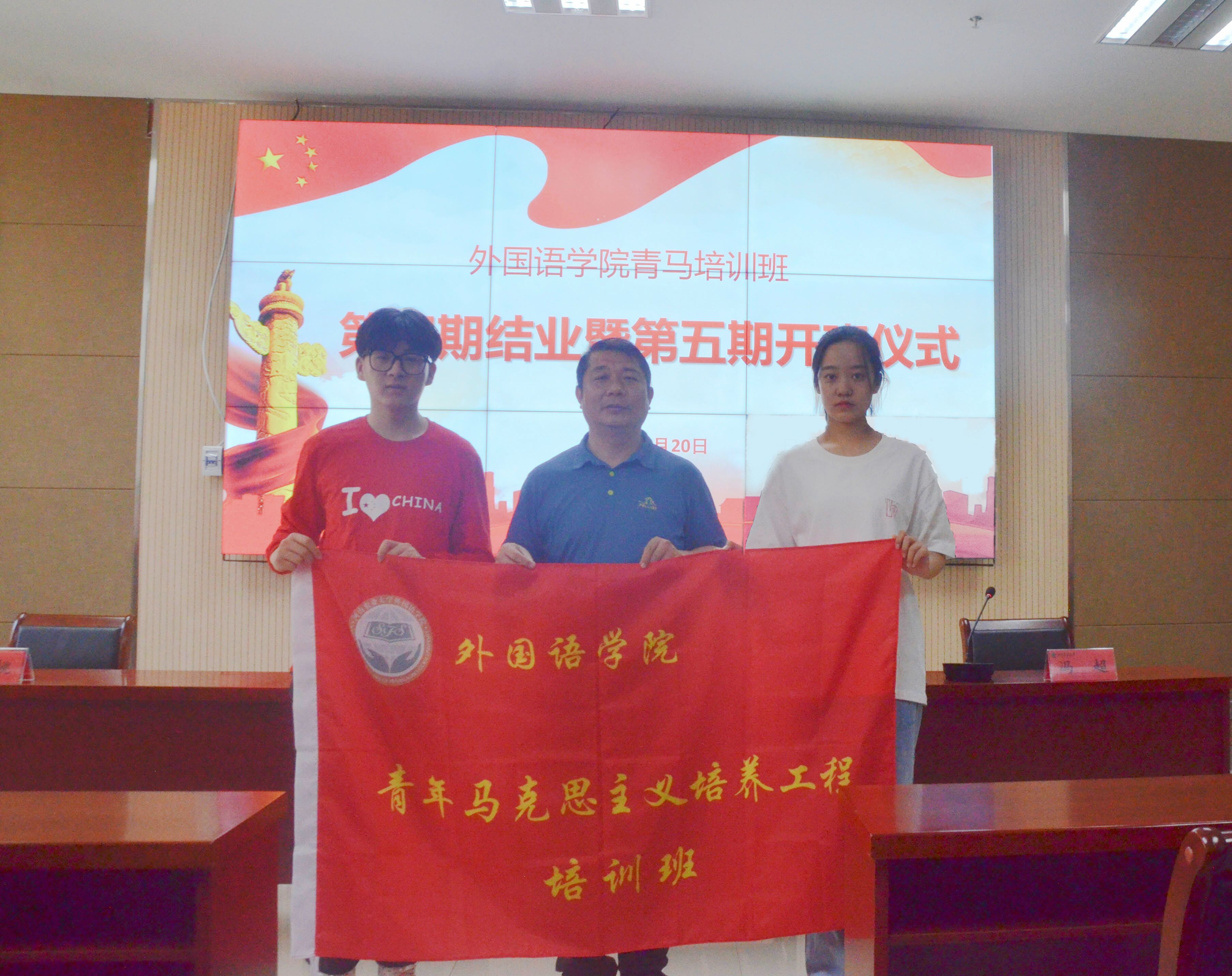于5月20日中午在龙子湖校区繁塔楼A324会议室举行了青马培训班第四期结业典礼暨第五期开班仪式。院党委书记邓振营、院党委副书记王启佩、院团委副书记陈桃、冯超、辅导员穆君怡携青马班第四、五期全体同学出席,本次仪式由王启佩主持。