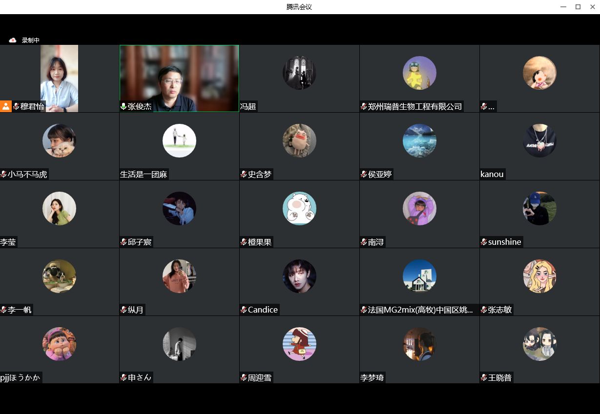 院长张俊杰与各大参会企业以线上形式进行交流,会议由辅导员穆君怡主持。