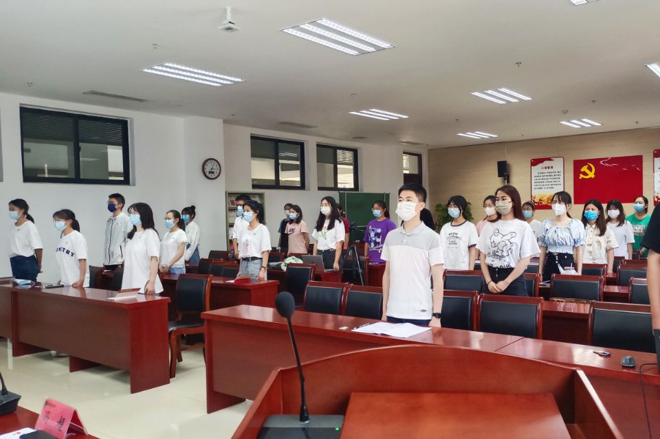 本网讯(审稿:陈桃 供稿:张仪婷)为进一步提高党员党性修养,充分发挥学生党员的先锋模范作用,引导学生党员坚定理想信念,5月30日,下午三点,学院于龙子湖校区繁塔楼A座324会议室举办新发展党员宣誓大会暨毕业生党员最后一堂党课活动。院长张俊杰、院党委副书记王启佩、副院长张卫东、院团委副书记陈桃、冯超携毕业生党员以及新发展党员参加此次会议。