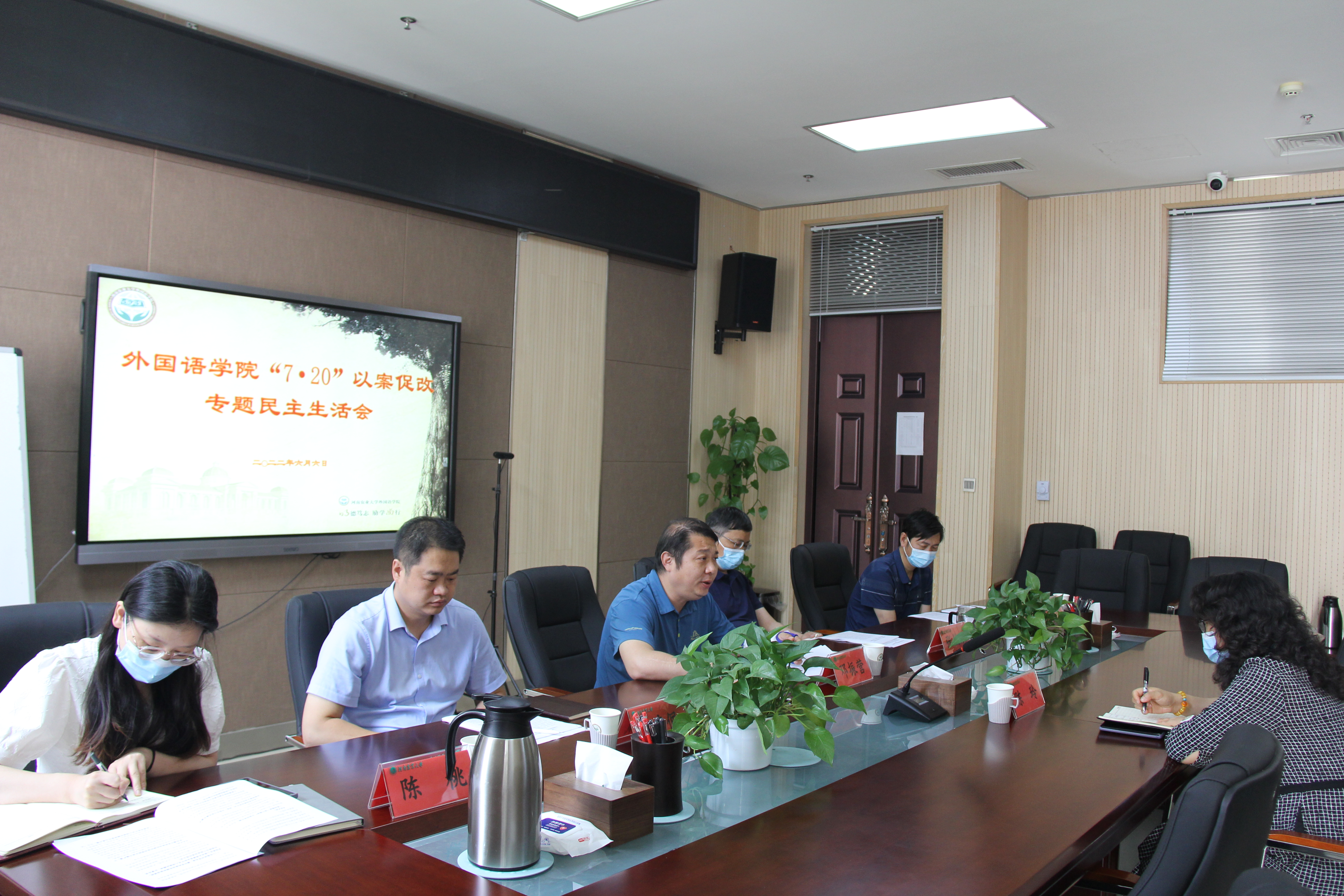 于6月6日上午在龙子湖校区A320召开了“7·20”特大暴雨灾害追责问责案件以案促改专题民主生活会,会议由院党委书记邓振营主持,班子成员参加,校纪委副书记陈玲出席并发表讲话。