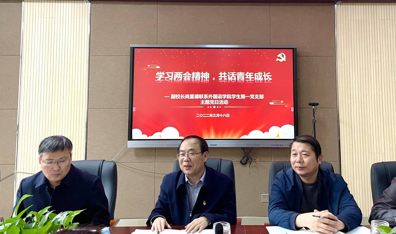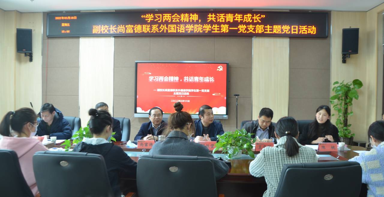 学生第一党支部在龙子湖校区A320会议室开展以“学习两会精神,共话青年成长”为主题的党日活动。副校长尚富德作为党支部联系校领导出席此次活动。大奶做爱