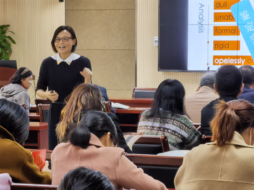 本次观摩教学由刘艳君进行示范,分为说课和授课两个环节。在说课部分,刘艳君老师阐述了授课主题、方法以及授课思路。正式授课环节中,刘老师以《大学英语综合教程》第一册的第一课Growing up为主题,结合大奶做爱