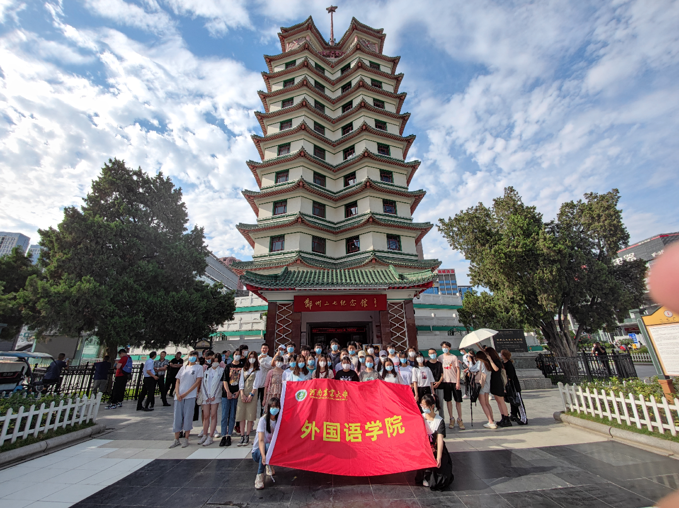 于6月18日下午在二七纪念塔开展了青春寻访暨党史教育实践活动,学院学生会全体成员参加本次活动。