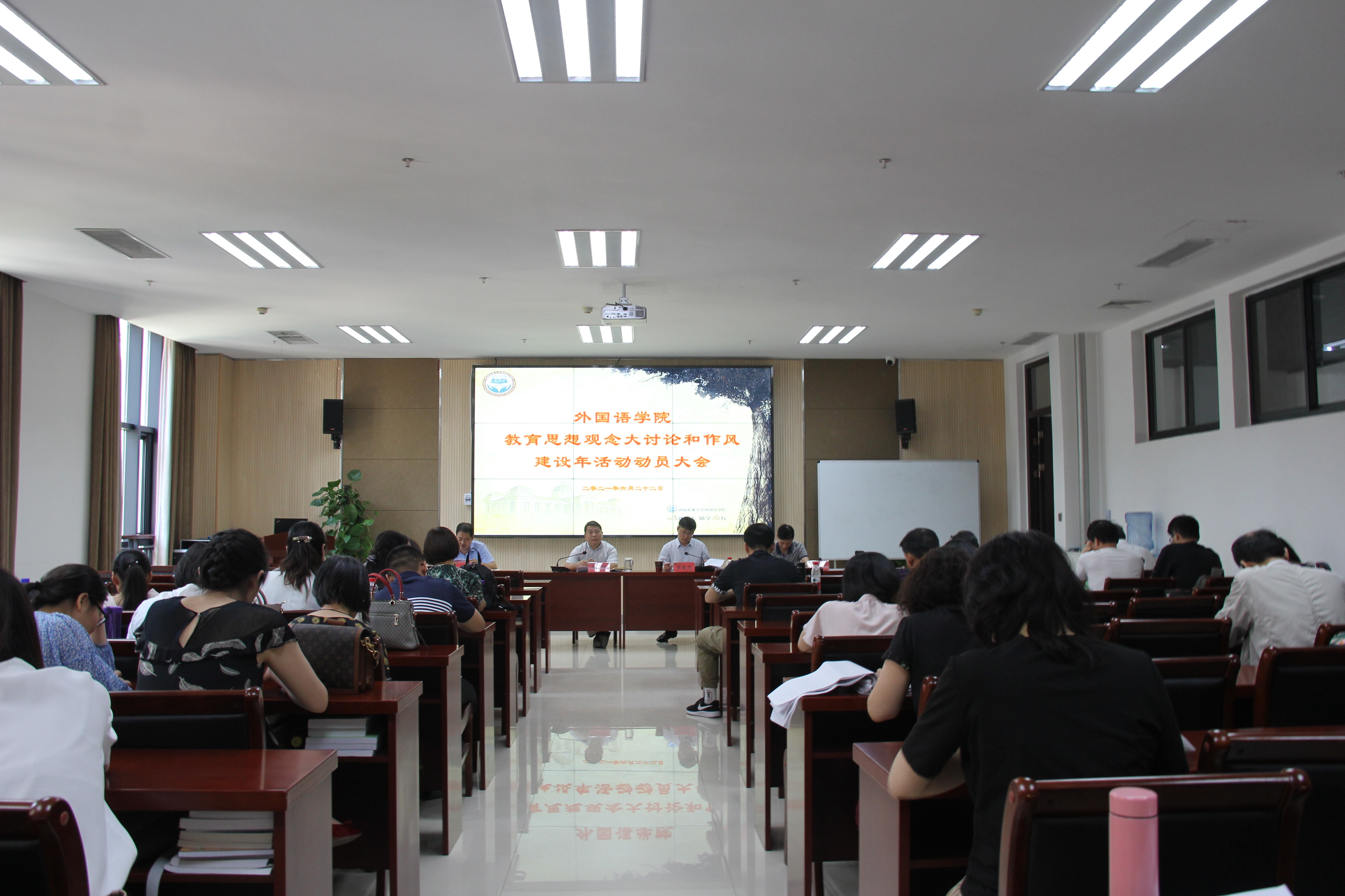 在龙子湖校区繁塔楼A324会议室召开了思想观念大讨论和作风建设年活动动员大会。院班子成员及全体教师参加会议,大会由院长张俊杰主持。