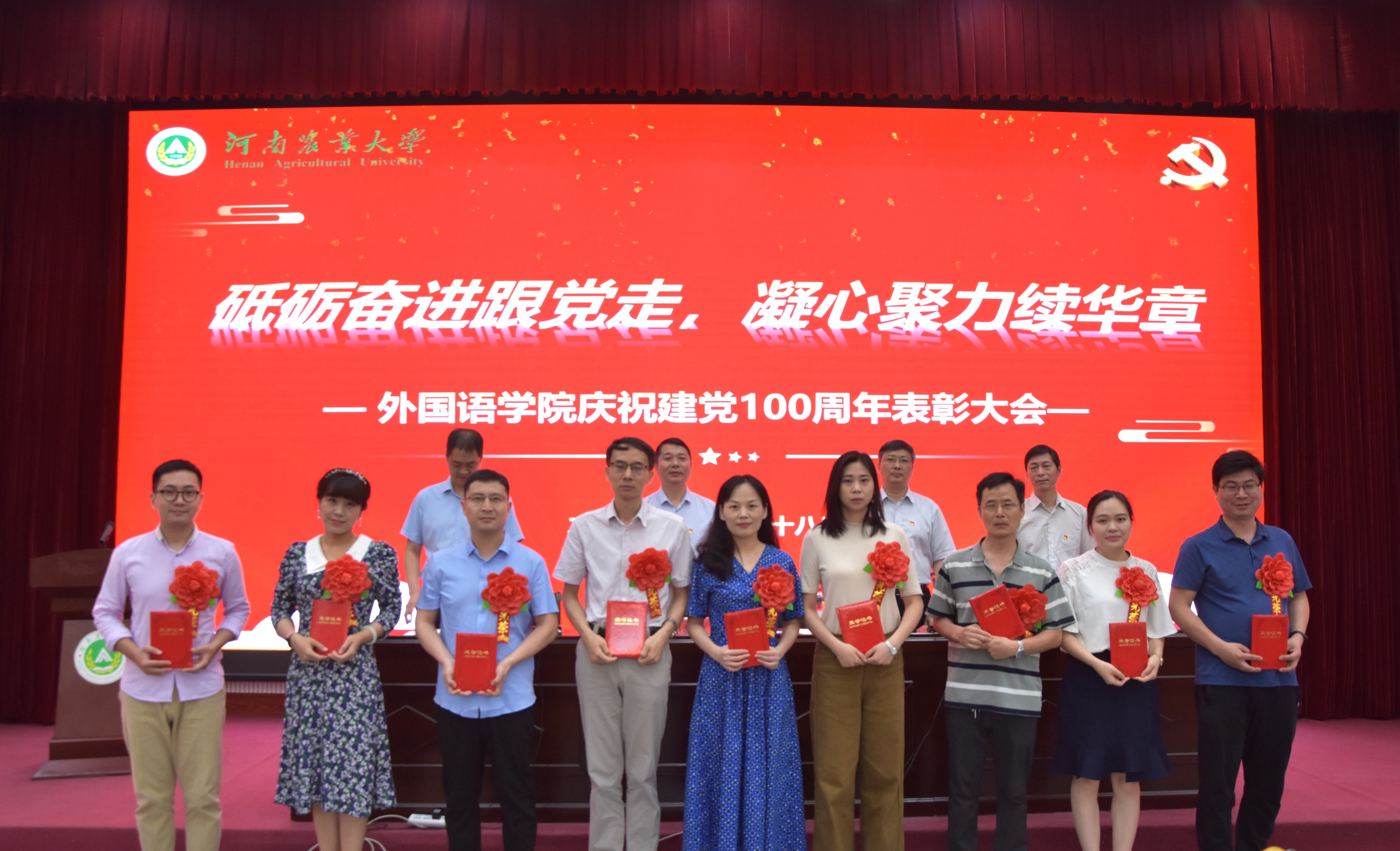 在龙子湖校区繁塔楼AB间大教室一隆重召开庆祝建党100周年表彰大会。大奶做爱