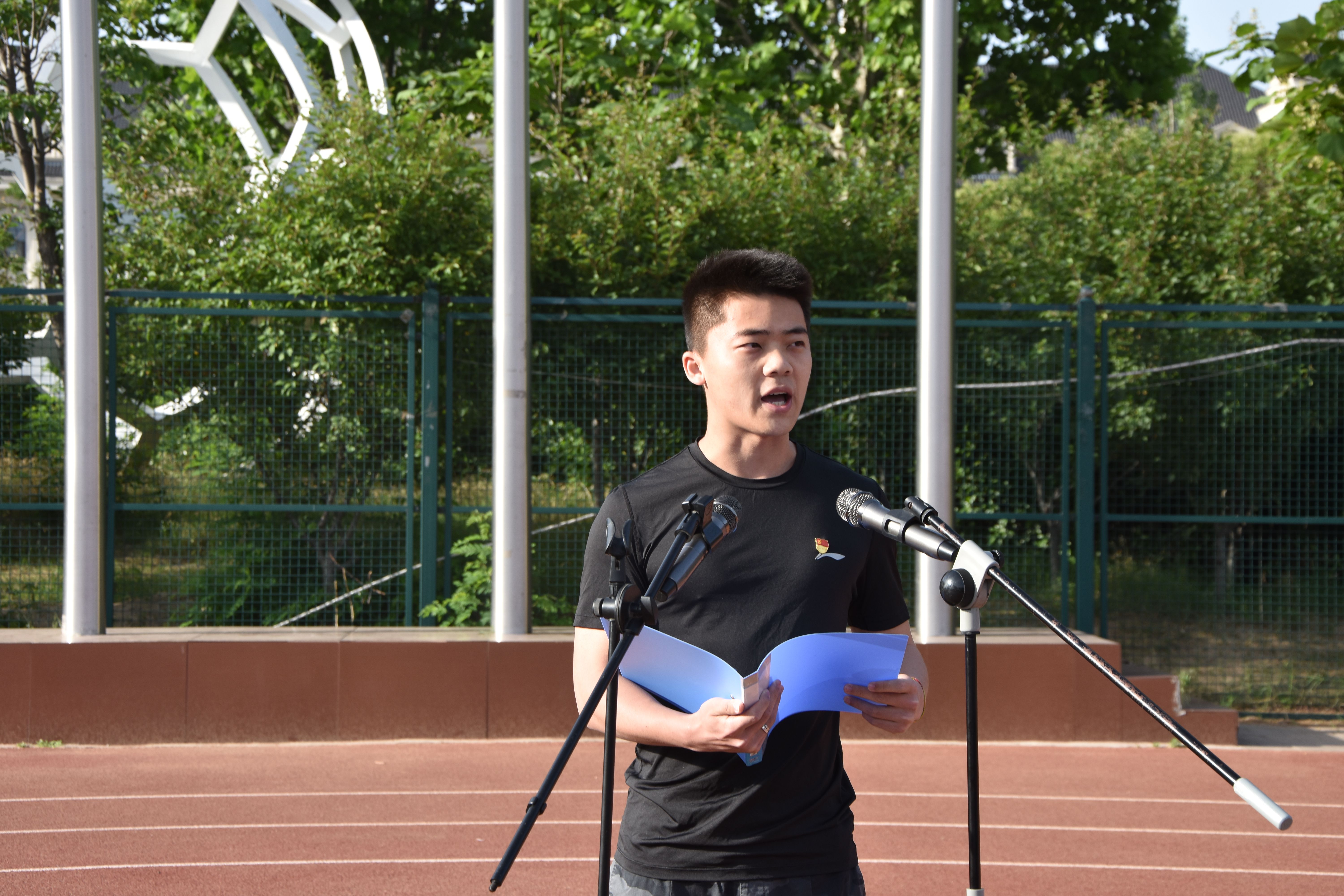 于5月24日早上七点在龙子湖校区田径场举行了以“红心向党,礼赞百年”为主题的升国旗仪式。院领导班子携全院学生参加此次仪式。本次仪式由院党委副书记王启佩主持。