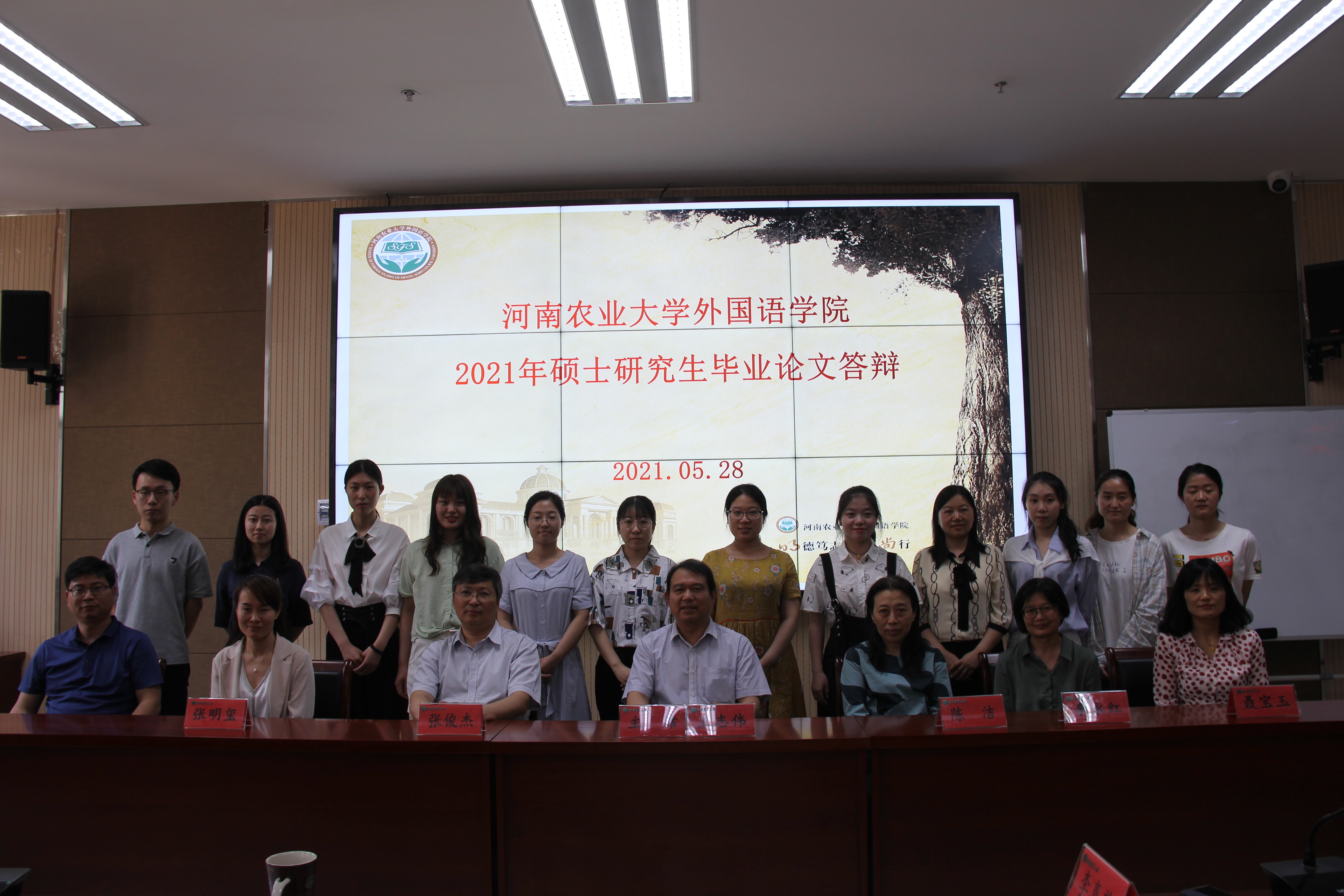 2021届硕士研究生学位论文答辩会在龙子湖校区繁塔楼A324举行。本届硕士研究生毕业论文答辩邀请郑州大学外国语与国际关系学院王志伟教授担任答辩主席,张俊杰院长、李喜芬、张明玺、陈洁、李永红、聂宝玉等硕士生导师担任答辩委员。参与答辩的学生共有13人。