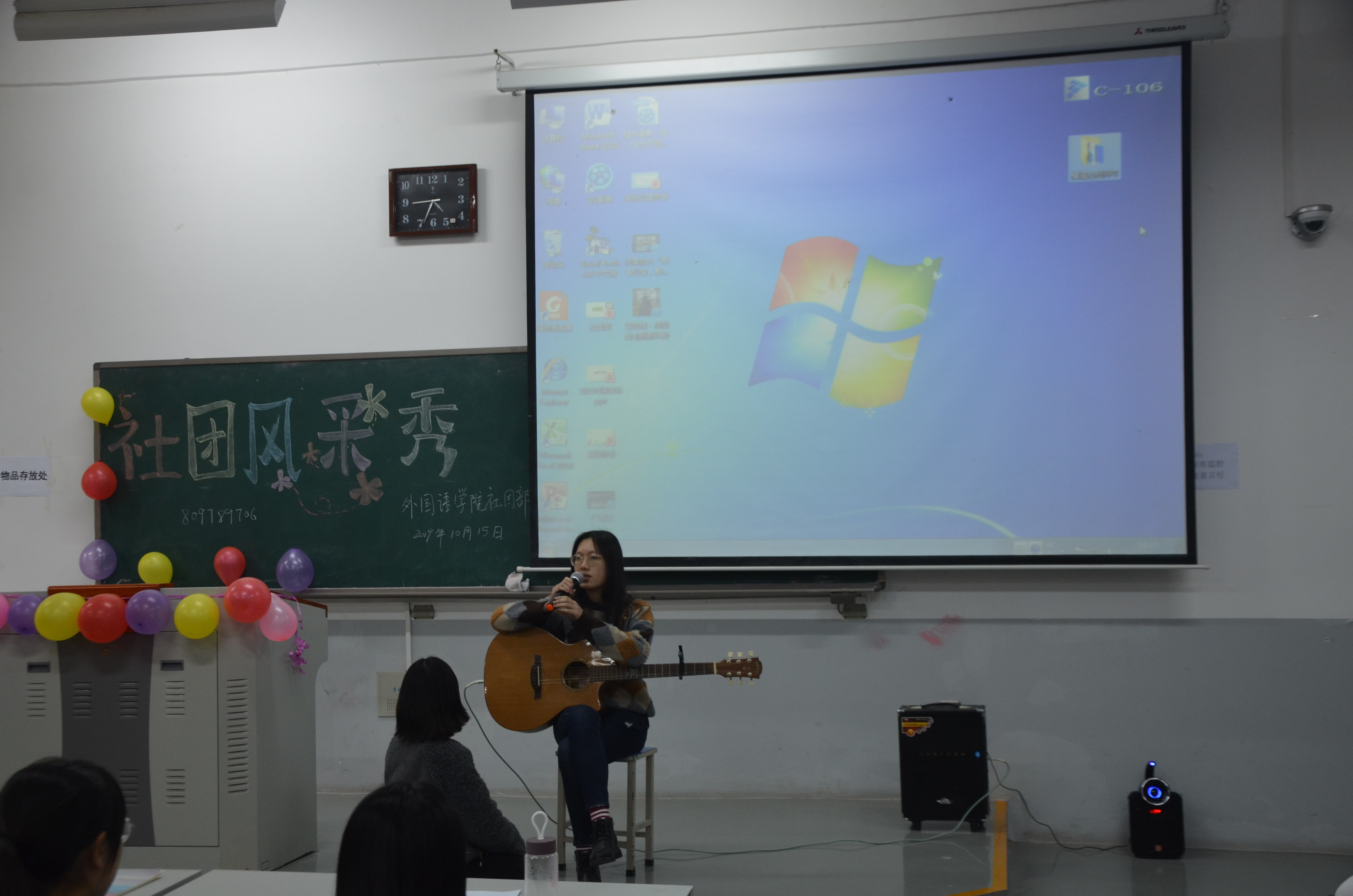 本网讯(审稿:李沛 供稿:张丹丹)为帮助新生尽快了解学院社团组织,感知社团文化魅力,10月15日下午3点,学院于繁塔楼C106教室举办以“唱响青春校园,共舞风采社团”为主题的社团风采秀。本次活动由大奶做爱