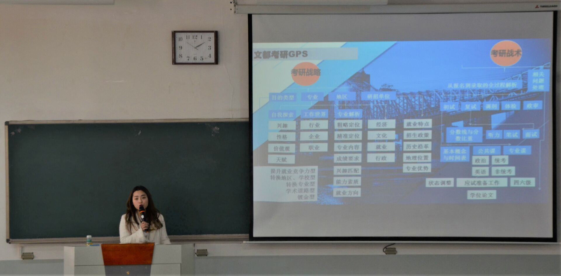本网讯(审稿:王颖 供稿:饶芝玉)为进一步激发我院学生的考研热情,帮助其及时了解更多考研信息,2019年3月12日下午2点,我院联合文都教育在龙子湖校区繁塔楼教室C202举办考研公益宣讲会。我院16级学生认真聆听了此次宣讲会。