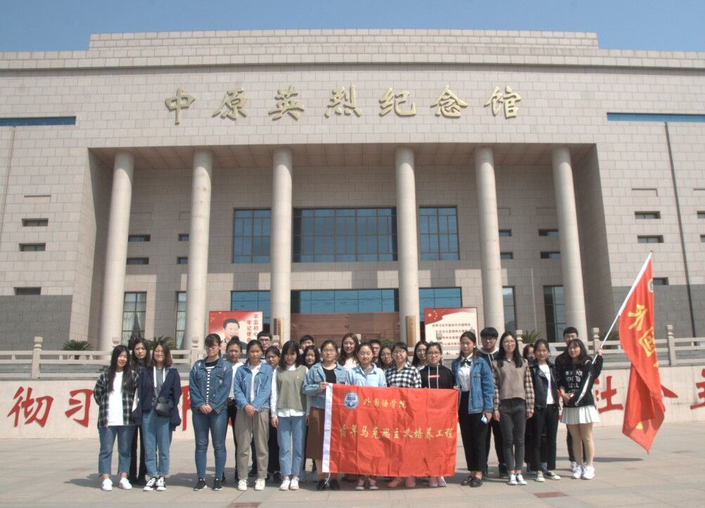 烈士长眠,松柏长青;吾辈后昆,式瞻谨诚。在烈士纪念碑前,青马班成员手持白菊,自觉列队,为在革命斗争中英勇就义的烈士们致哀,全体人员共同哀思、缅怀革命烈士。随后,学生代表进行发言,他带领大家回顾了革命先烈们抛头颅、洒热血,保卫中华的悲壮历史,缅怀了一代又一代前仆后继英勇无畏的革命先锋。青马班成员们静立在纪念碑前,追思革命前辈的无畏精神,景仰与追慕先人辛勤的开拓与奋斗精神,并献上鲜花,以示缅怀之情。在鲜红的青马班旗前,成员们庄严地举起右手重温青马誓词。最后,成员们参观了中原英烈纪念馆。馆内大量珍贵的历史文物和图片生动地再现了抗日战争、解放战争时期的真实场景,革命烈士的英勇抗争和无畏奉献让在场所有人都为之动容。
