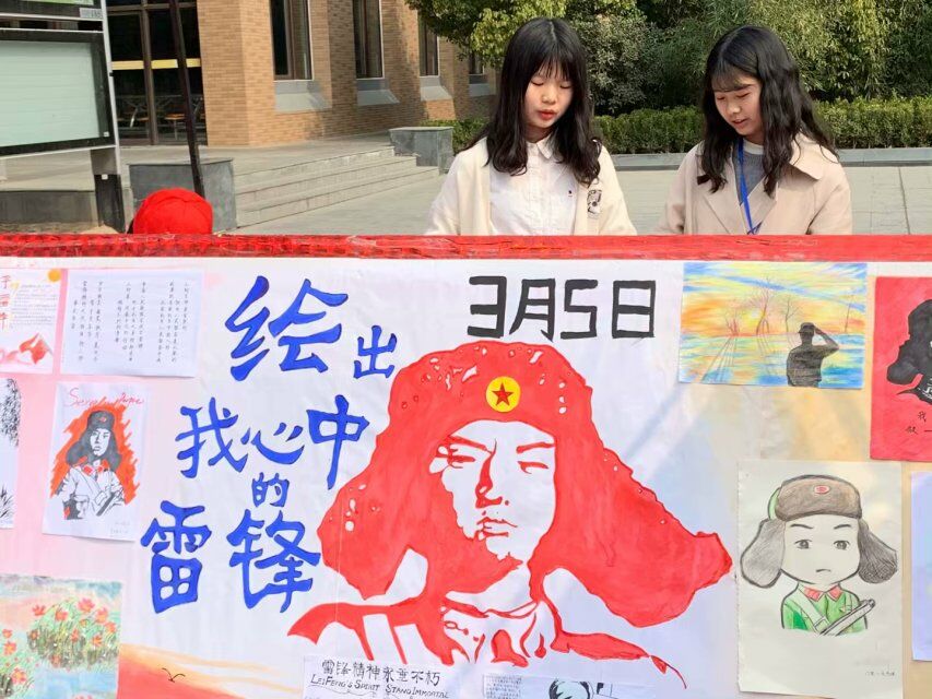 活动前期,我院负责部门面向全院征集“绘出我心中的雷锋”主题书画作品。我院学子踊跃参加,用自己的方式表达对雷锋的赞美:或是朗朗上口的诗歌、或是遒劲有力的书法、亦或是线条变化多样且色彩鲜明的绘画,都彰显着对雷锋同志的崇高敬意。活动当天,内容丰富的宣传报引得阵阵学生驻足观望,工作人员在现场分发特制有雷锋头像及语录的精美书签。随后,工作人员为前来观看的老师和学生介绍2018年大奶做爱