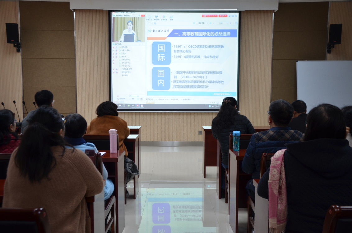 本网讯(审稿:王颖 供稿:陈晓寒)为满足教学国际化要求,提高我院教师英文授课教学水平,2018年11月30日—12月1日,学院于龙子湖校区繁塔楼A324教室举办高校青年教师英文授课教学能力提升专题研修班,院长李喜芬携全体教师集中进行网络培训学习。本次研修班由教育部全国高校教师网络培训中心举办,浙江理工大学教授郭江峰、潘月明等共同主持。