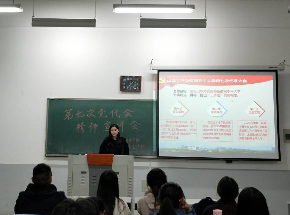第七次党代会精神,引导学生了解学校发展方向,学院于10月31日晚七点在繁塔楼C103教室召开了“校第七次党代会精神宣讲会”。学院各年级宣传委员和各部门宣传人员参与了此次宣讲活动。