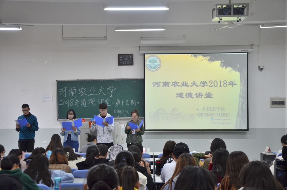 本网讯(审稿:王颖 供稿:饶芝玉)为进一步提升学院学生思想道德修养和精神文明素质,引领道德新风尚,传递青春正能量,11月6日下午3点,学院于龙子湖校区繁塔楼C208教室召开第十五期道德大讲堂。学院团委辅导员王颖携主要学生代表出席此次道德讲堂。