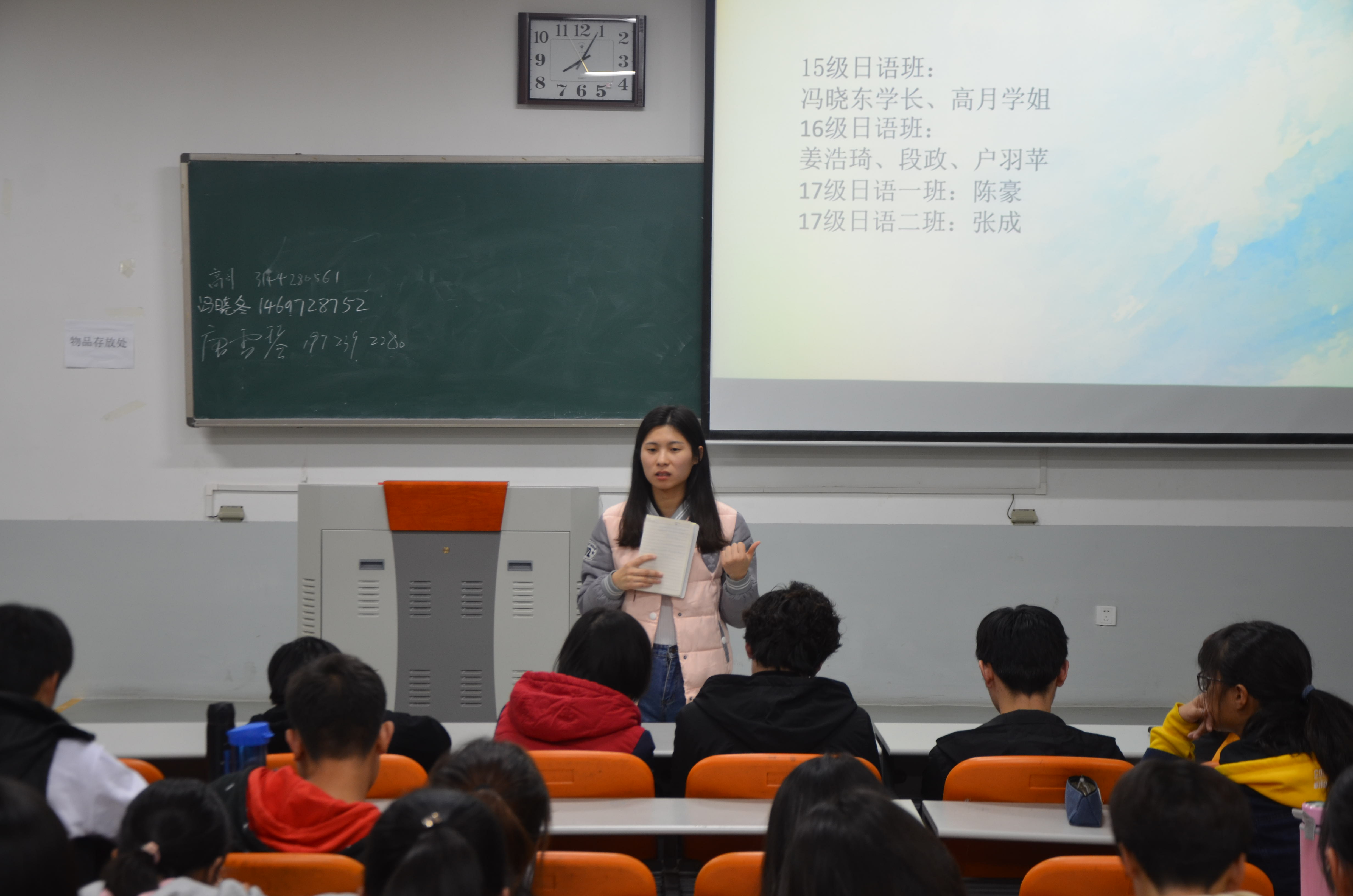 本网讯(审稿:王颖 供稿:陈晓寒)为激发日语系学生学习日语的积极性,增强学生学习能力,我院于11月15日晚7点在繁塔楼C402教室举办日语系N1、N2交流会。全体18级日语系学生参加本次交流会。