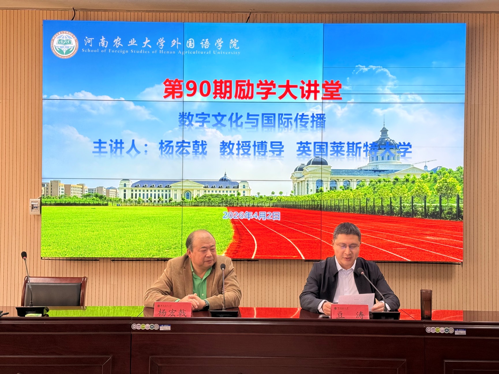 第90期“励学大讲堂”,并作了题为“数字文化与国际传播”的学术报告。报告会由副院长豆涛主持,学院骨干教师、研究生及本科生代表参加。
