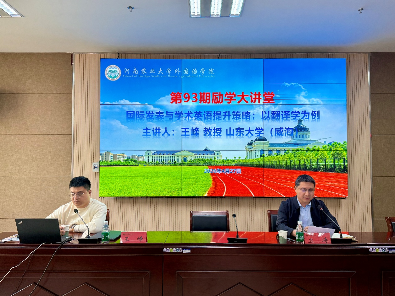 教授、博士生导师王峰应邀做客本期讲堂,作了题为“国际发表与学术英语提升策略:以翻译学为例”的专题报告。报告会由副院长豆涛主持,吸引了我院众多师生到场聆听。