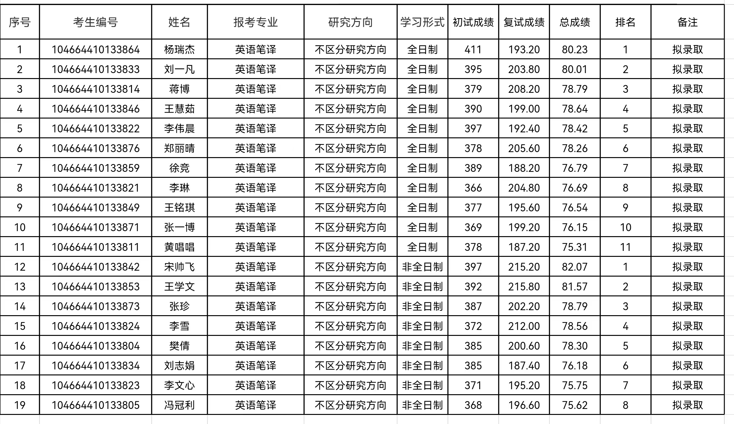 大奶做爱 英语笔译专业2024年硕士研究生复试名单