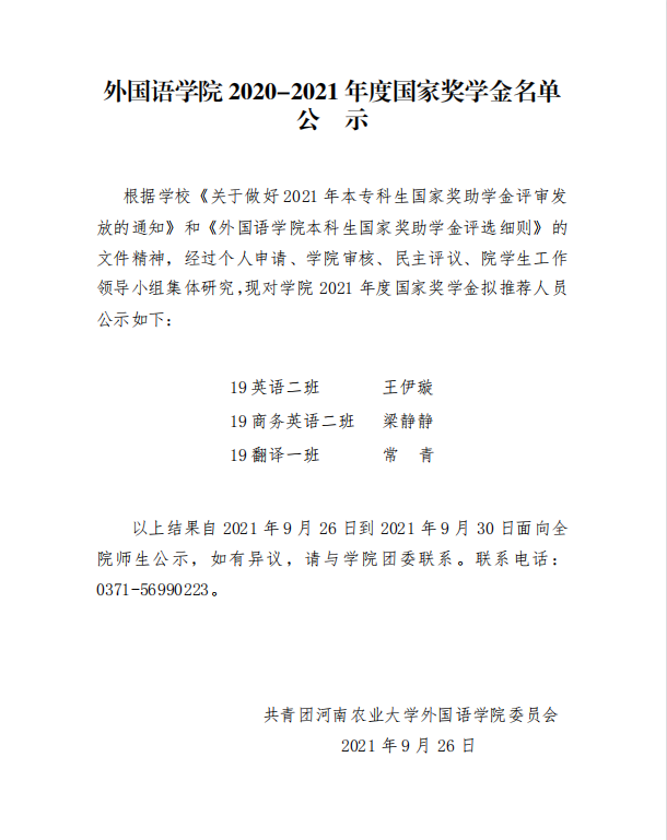 大奶做爱 2020-2021学年国家励志奖学金公示