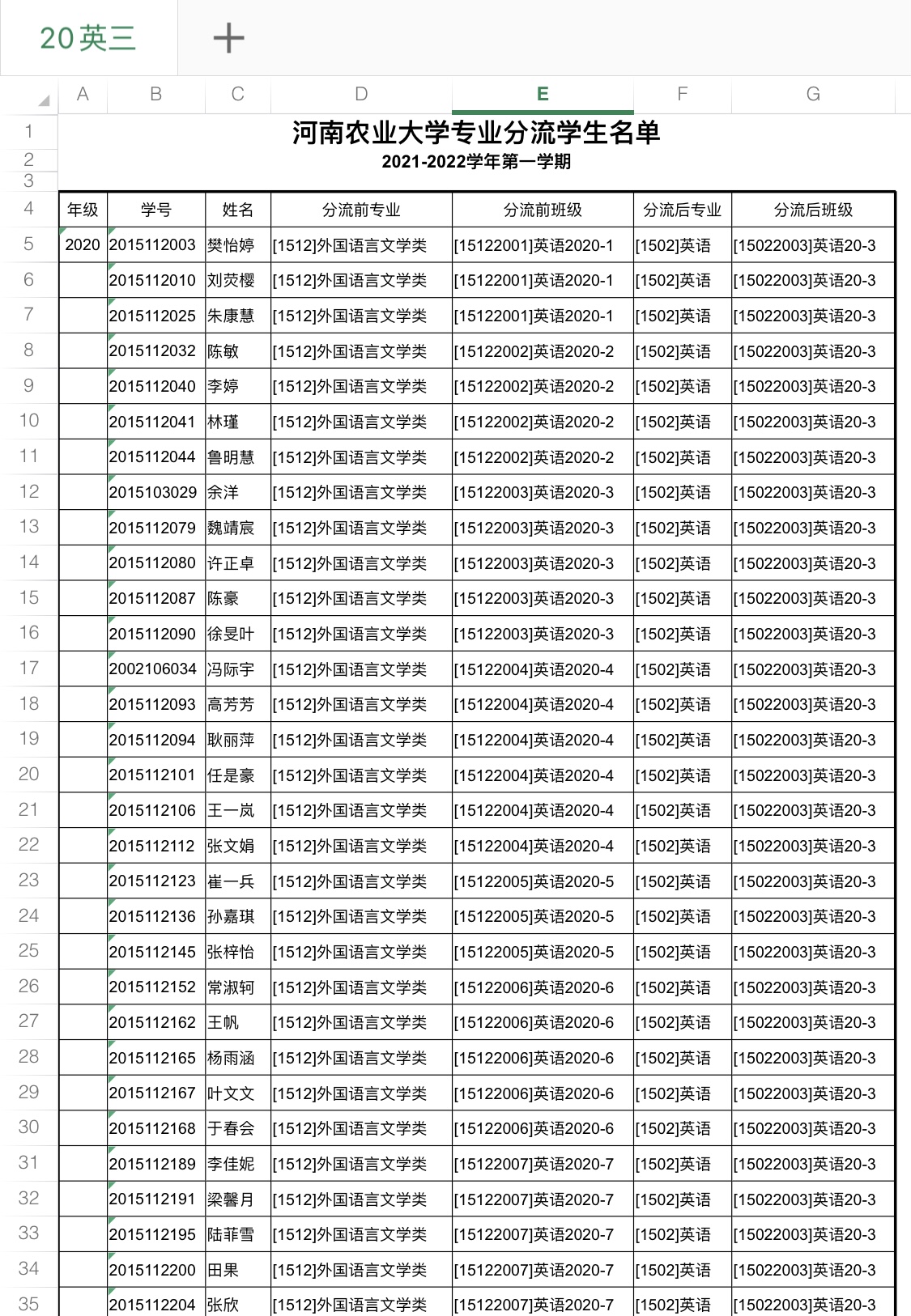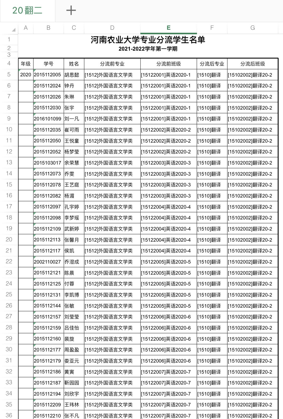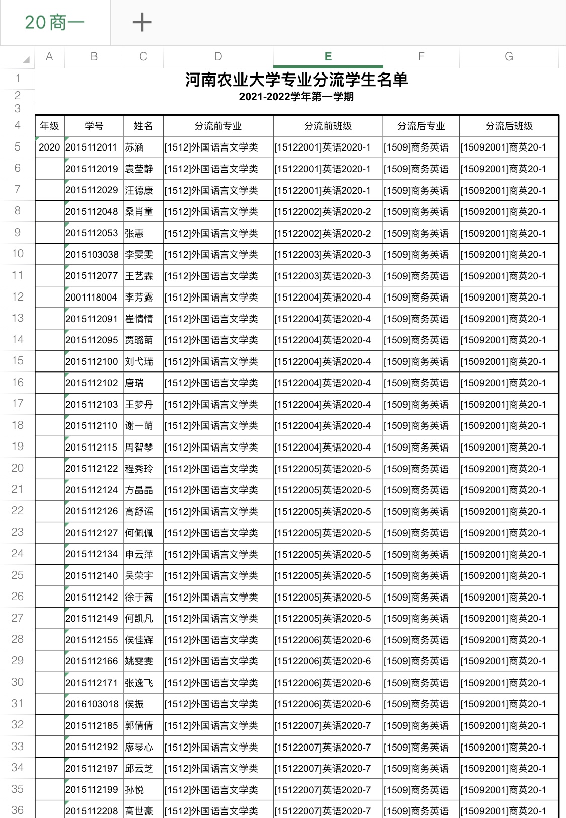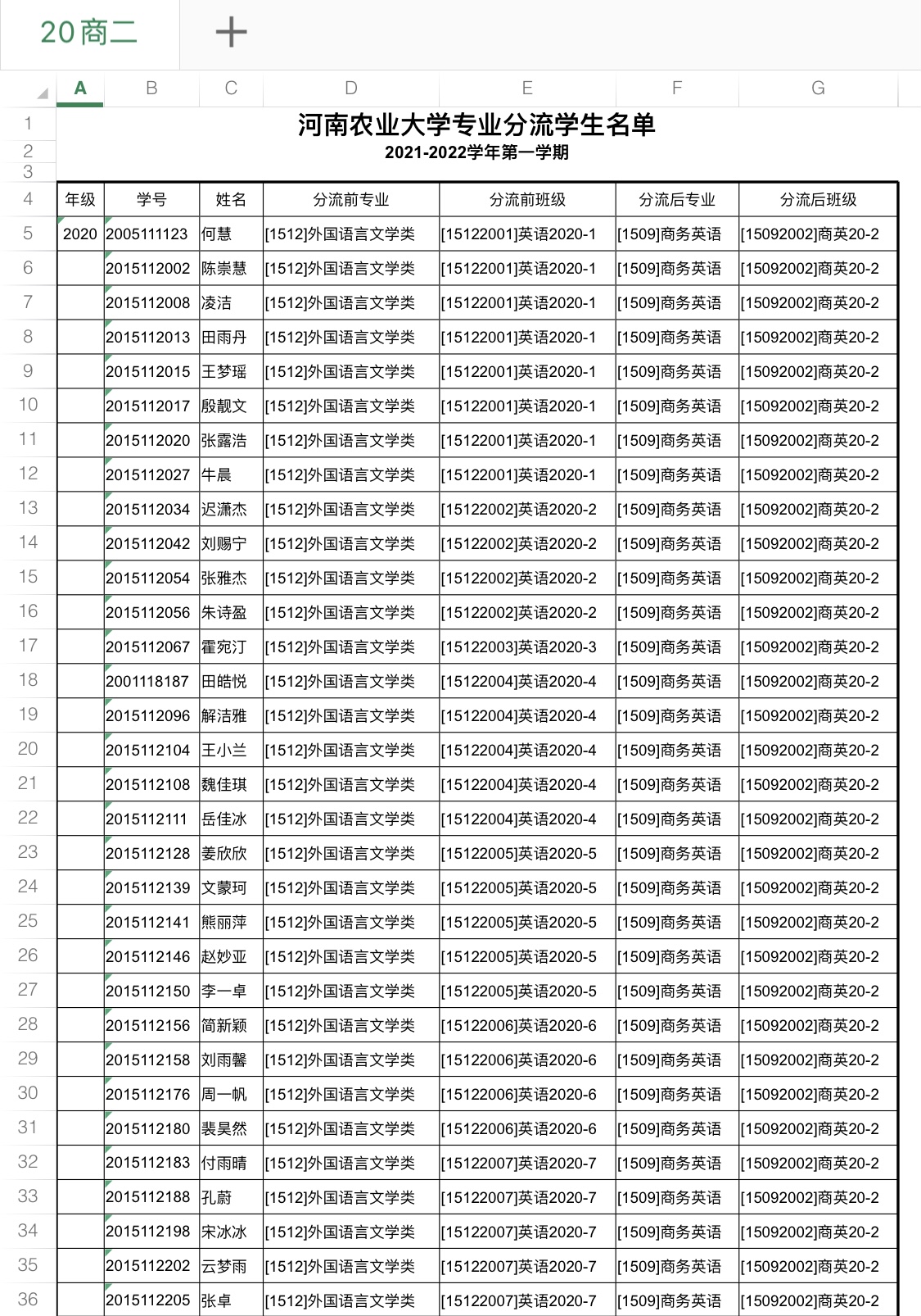 大奶做爱 2020级大类招生专业分流名单