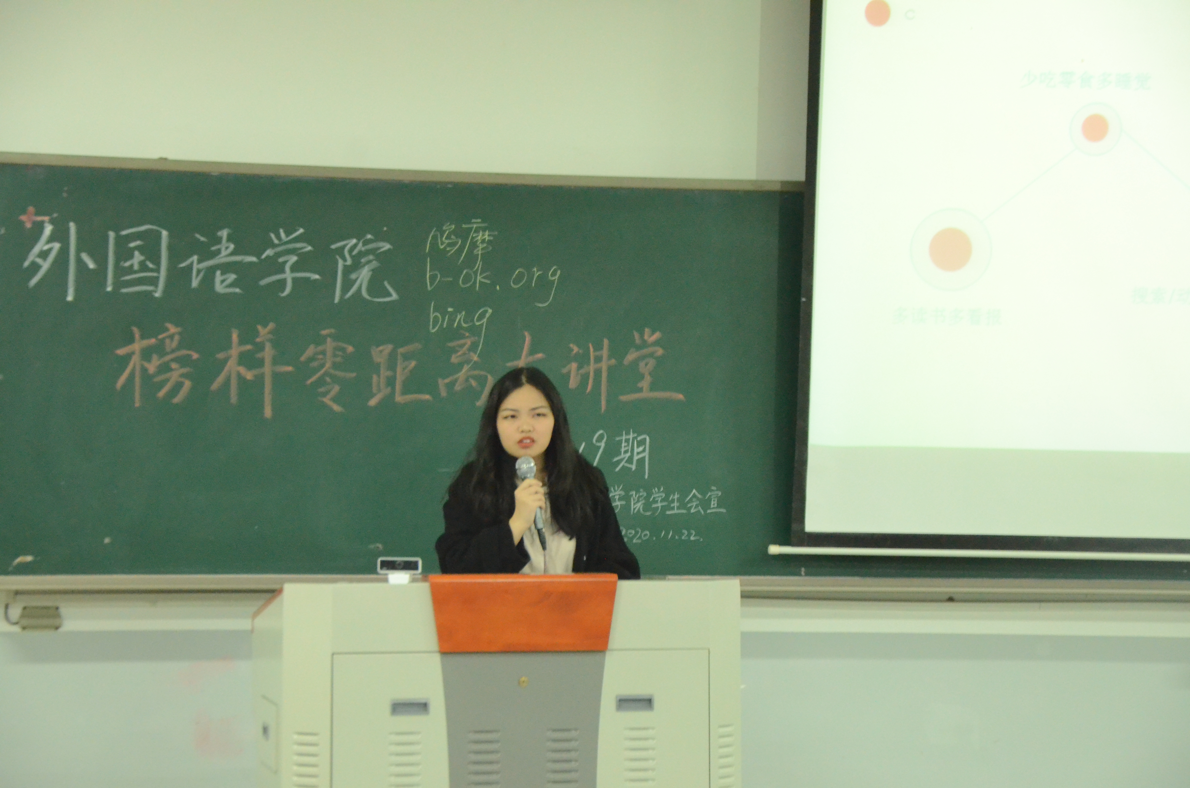 本网讯(审稿:李沛 供稿:王莉)为发挥榜样的力量,激励广大学生明确学习目标,掌握学习方法,11月22日晚上7点,我院于龙子湖校区繁塔楼C106教室举办了第19期榜样零距离讲堂,学院7名国家奖学金、国家励志奖学金获得者及一名推免生全程分享了经验。我院19级、20级学生认真聆听此次讲座。