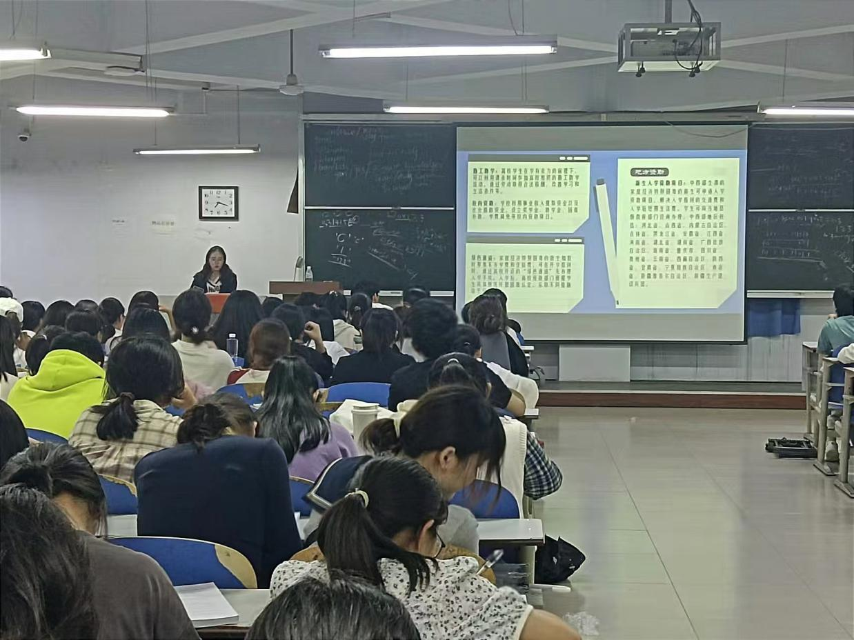 宣讲会上,原怡婷详细介绍了国家奖学金、国家励志奖学金、国家助学金等资助项目的申请条件、评审流程及资助标准。她强调,国家奖学金旨在激励品学兼优的学生,申请者需在学业成绩、科研创新、社会实践等方面表现突出;国家励志奖学金则面向家庭经济困难且成绩优异的学生,申请者需提供家庭经济困难证明并具备良好的综合素质;国家助学金则重点资助家庭经济困难学生,帮助他们顺利完成学业。